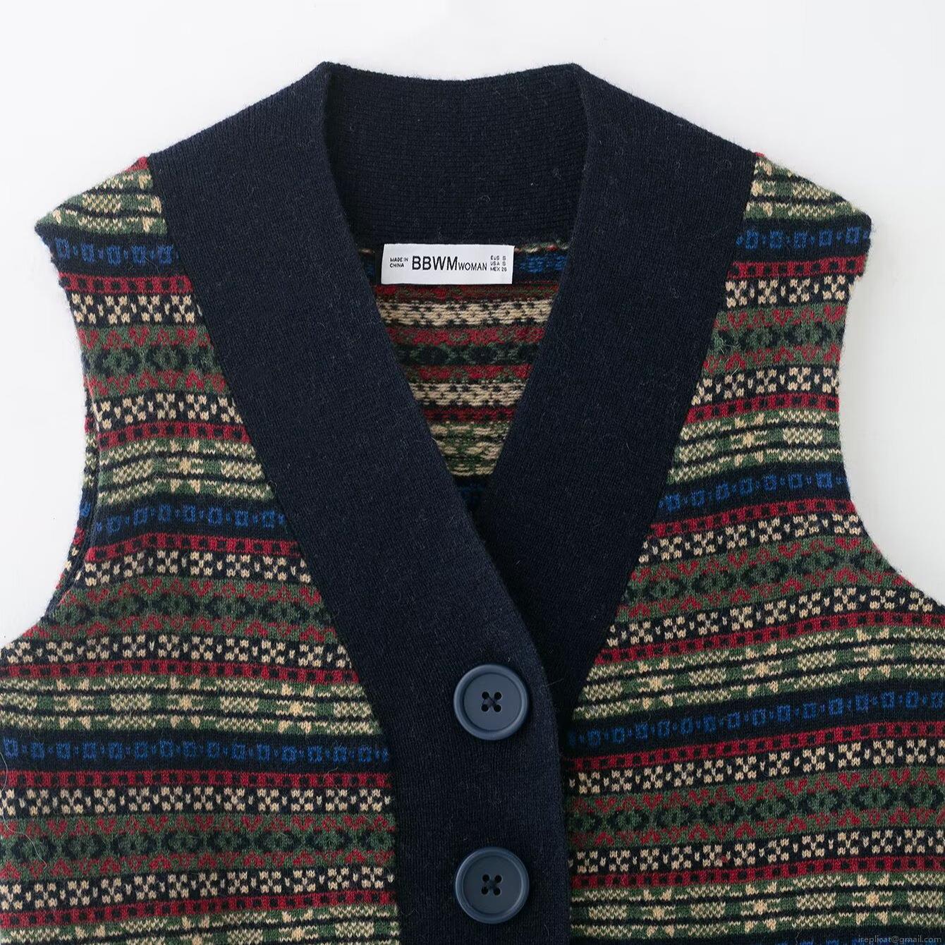 Women's Vintage Fair Isle Knit Vest V Neck Button Down Geometric Jacquard Sleeveless Sweater Cardigan Casual Retro Polyester Top