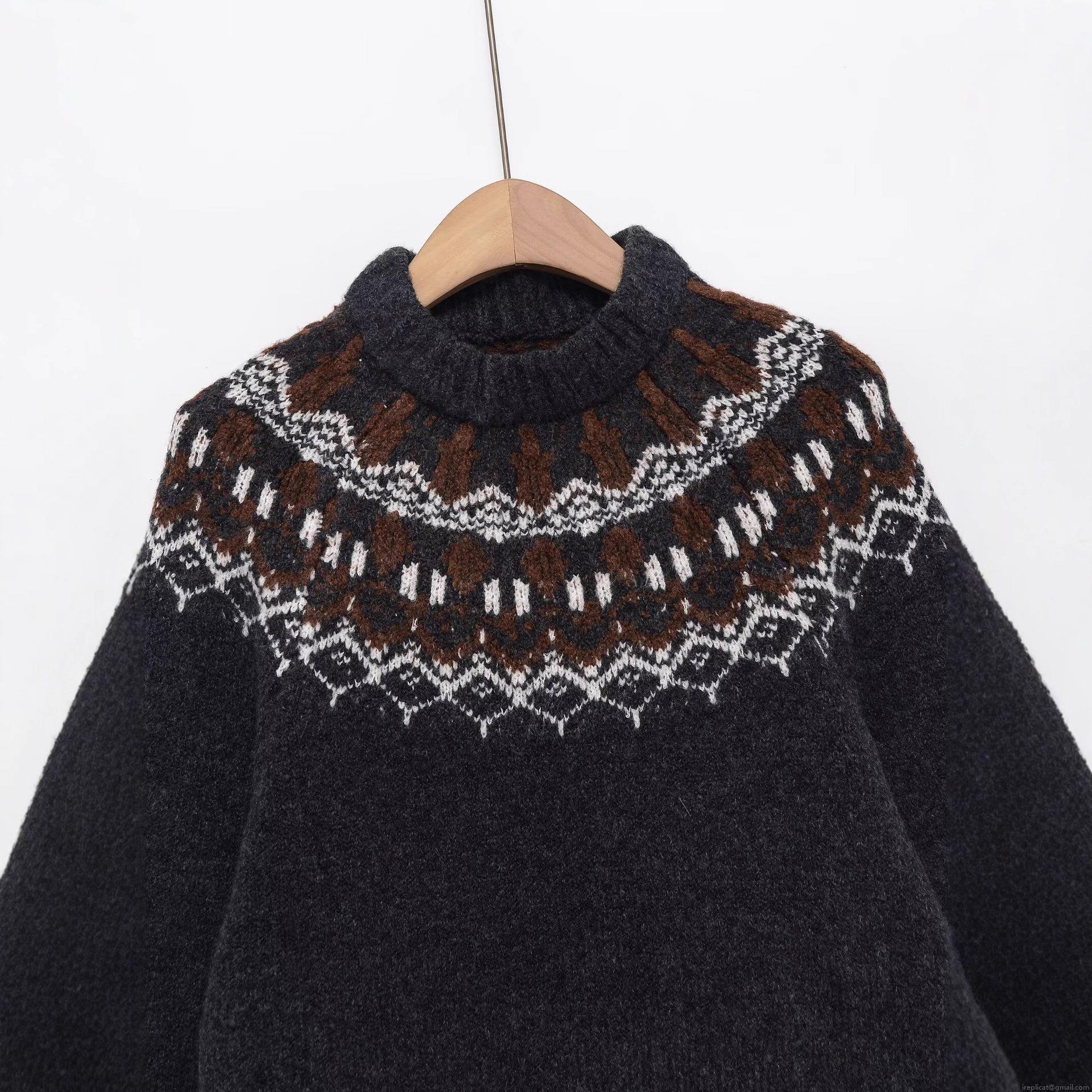 Women's Vintage Fair Isle Knitted Sweater Round Neck Long Sleeve Polyester Pullover Winter Warm Geometric Pattern Streetwear Casual Knit Jumper Top