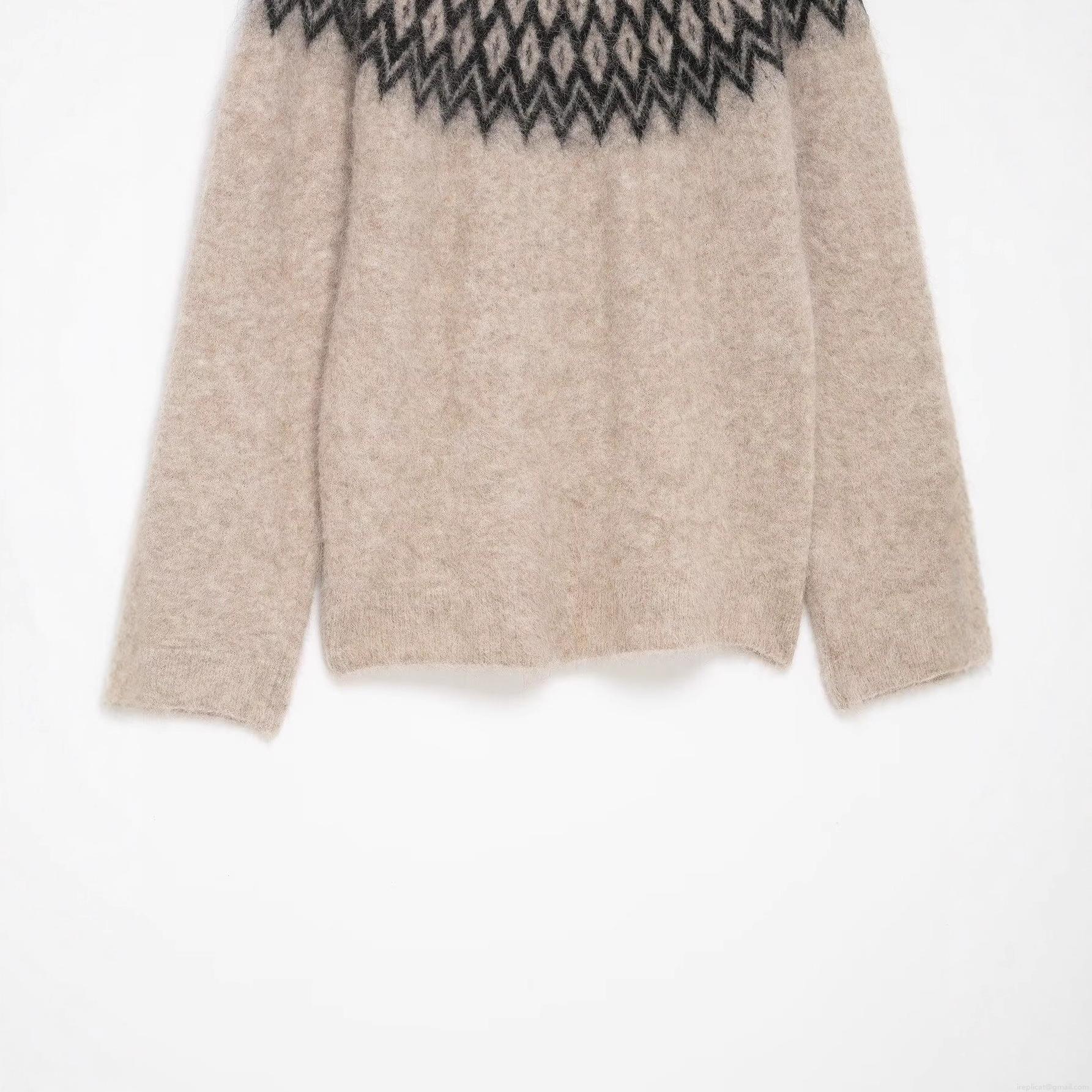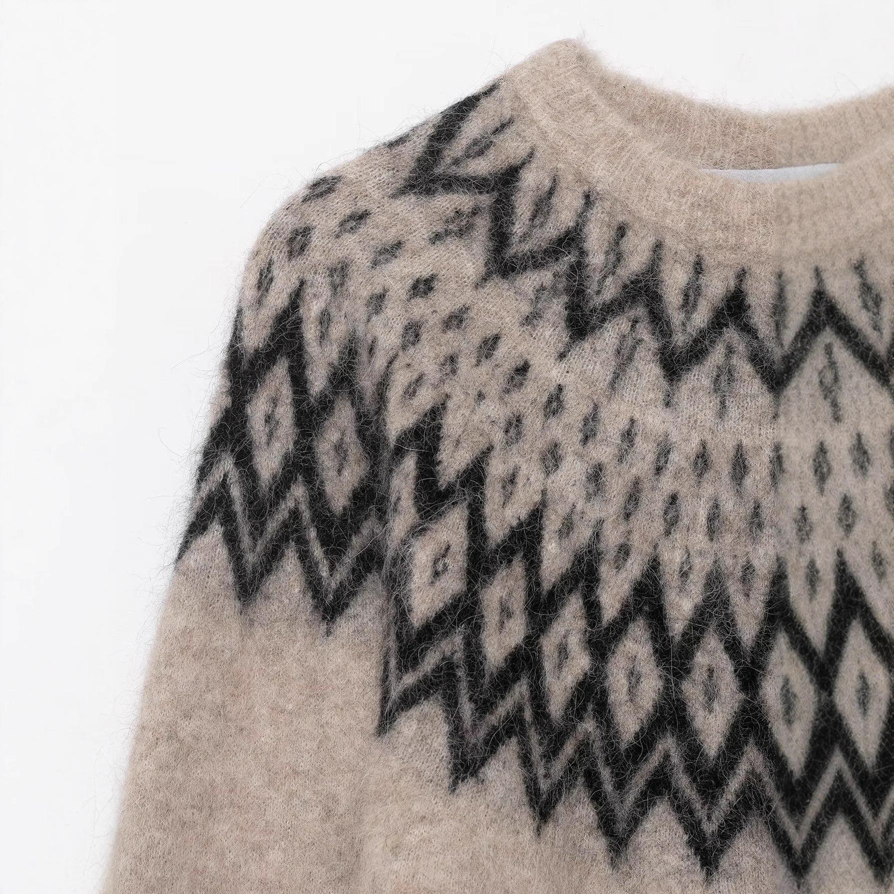 Women's Vintage Fair Isle Sweater 100% Polyester Plush Knit Long Sleeve Warm Crew Neck Pullover for Autumn Winter Casual Daily Wear European Streetwear Style
