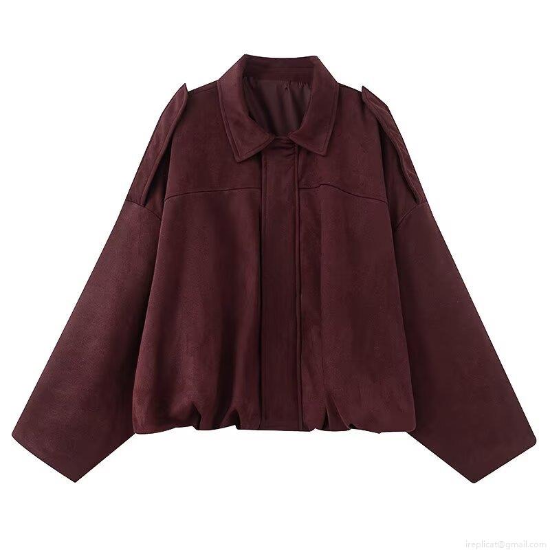 Women's Vintage Faux Suede Bomber Jacket Loose Fit Square Collar Long Sleeve Outerwear For Daily Casual Streetwear Fall Winter Warm Coat Retro Style