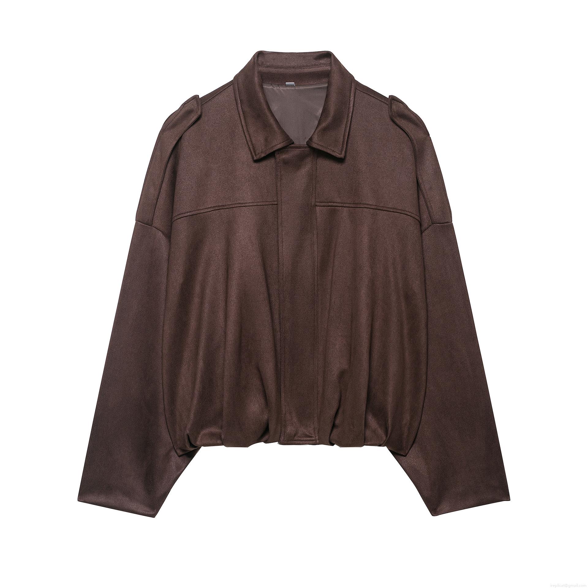 Women's Vintage Faux Suede Bomber Jacket Solid Color Lapel Zip Up Short Flight Coat With Epaulets Long Sleeve Casual Streetwear Outwear Polyester