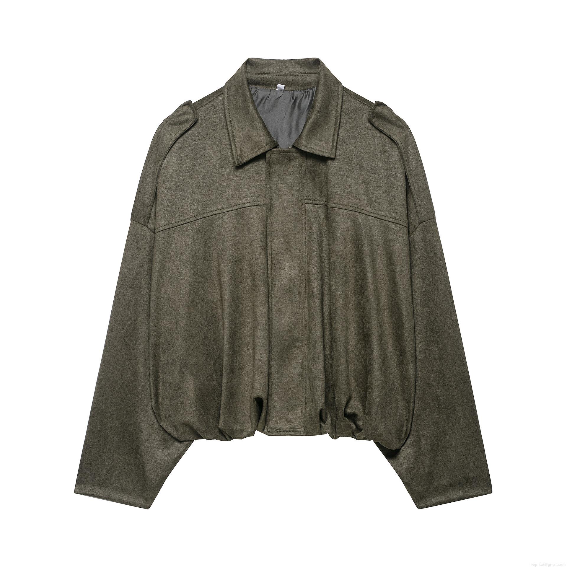 Women's Faux Suede Polyester Bomber Jacket Solid Color Short Coat...