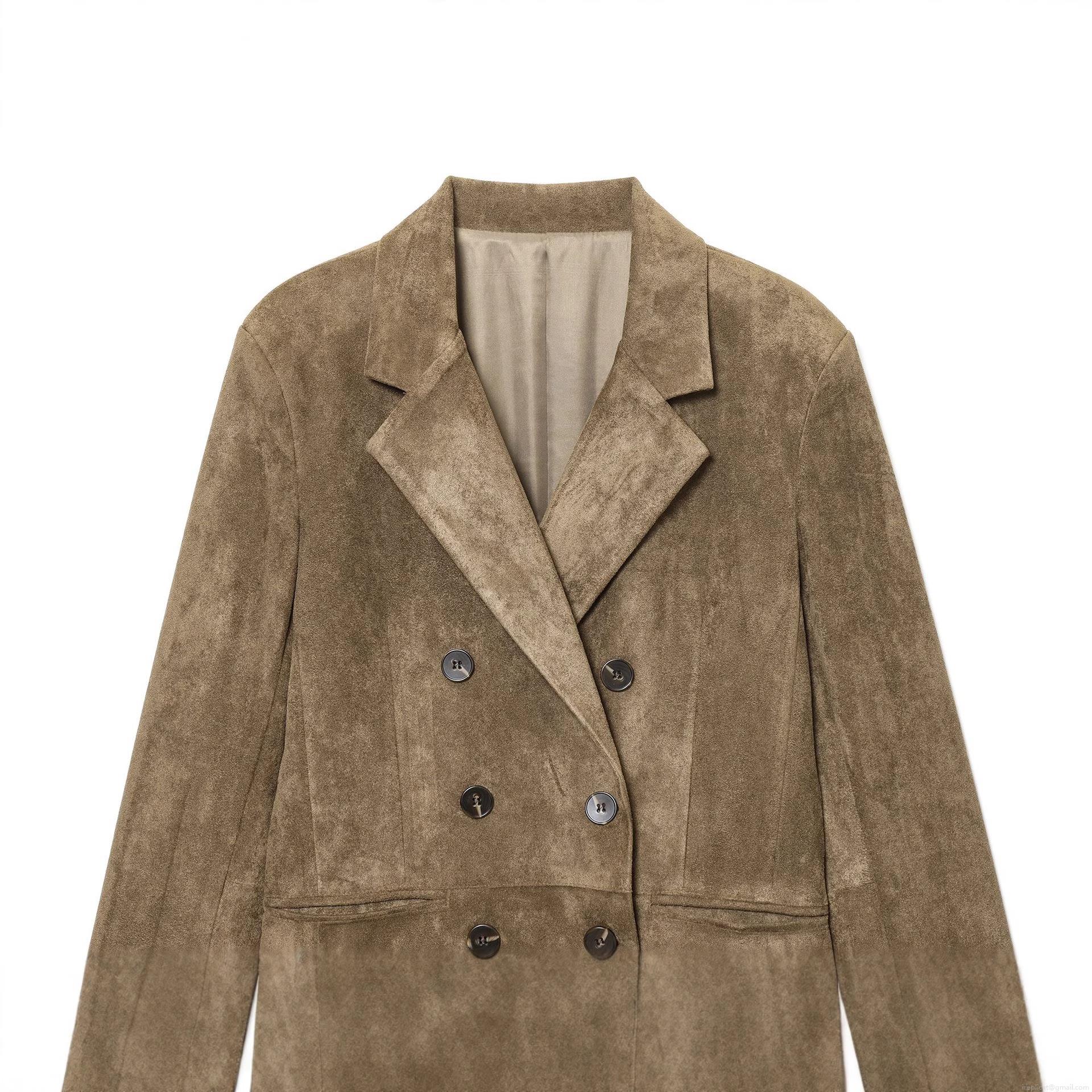 Women's Vintage Faux Suede Double Breasted Blazer Jacket Lapel Loose Solid Color Long Sleeve Outwear Streetwear Coat For Lady