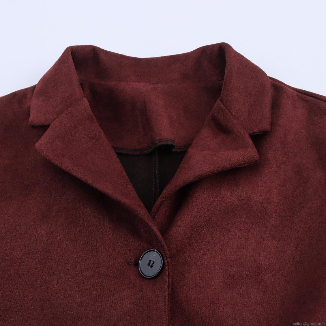 Women's Vintage Faux Suede Short Jacket Loose Fit Lapel Long Sleeve Single Breasted Casual Outerwear Wine Red Button Down Autumn Winter Coat For Women