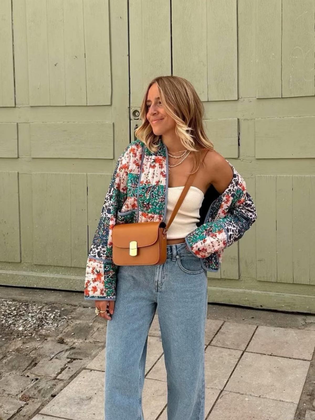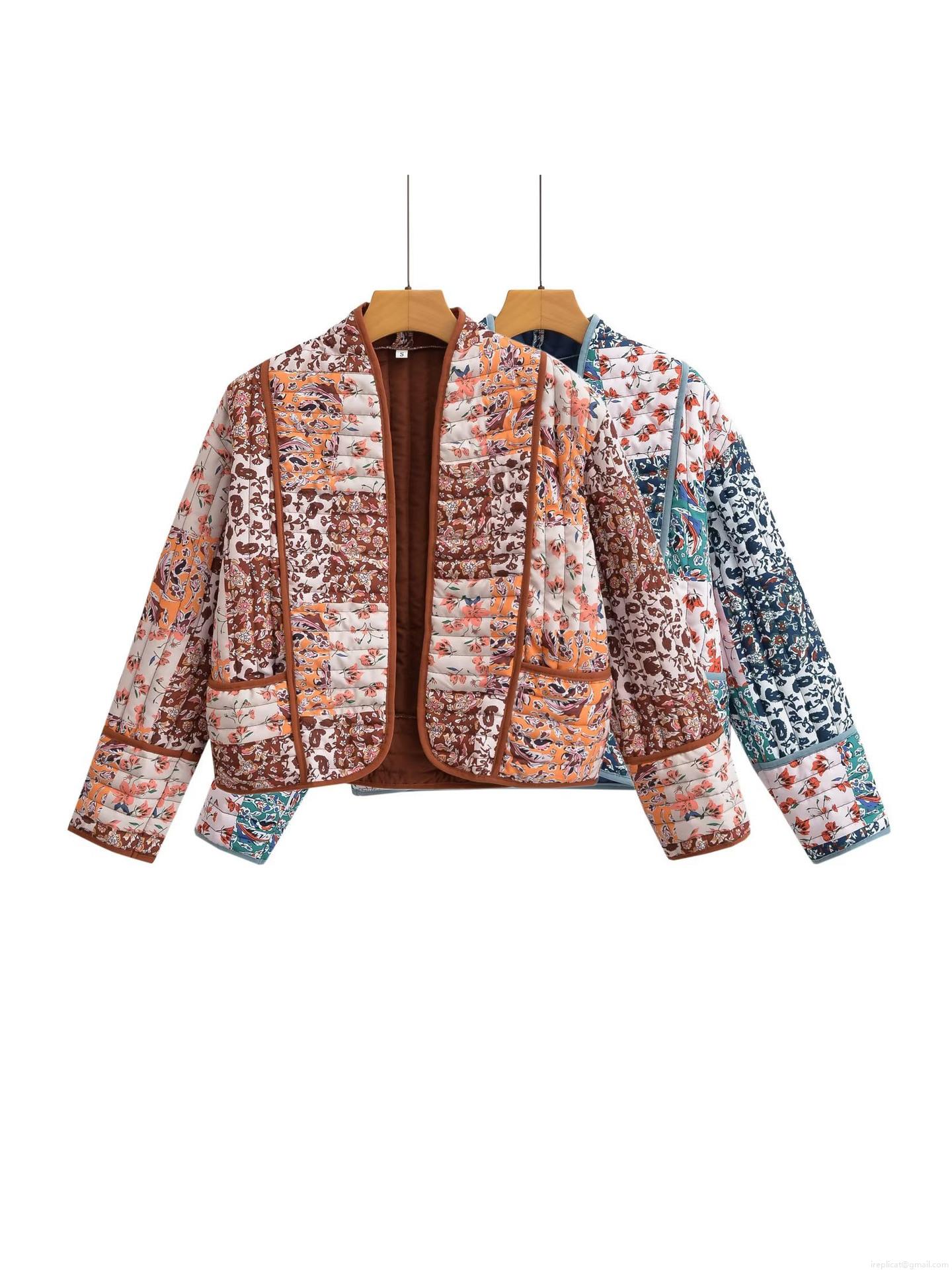 Women's Vintage Floral Print Quilted Cotton Jacket Loose Open Front Patchwork Padded Coat Boho Casual Outerwear For Autumn Winter