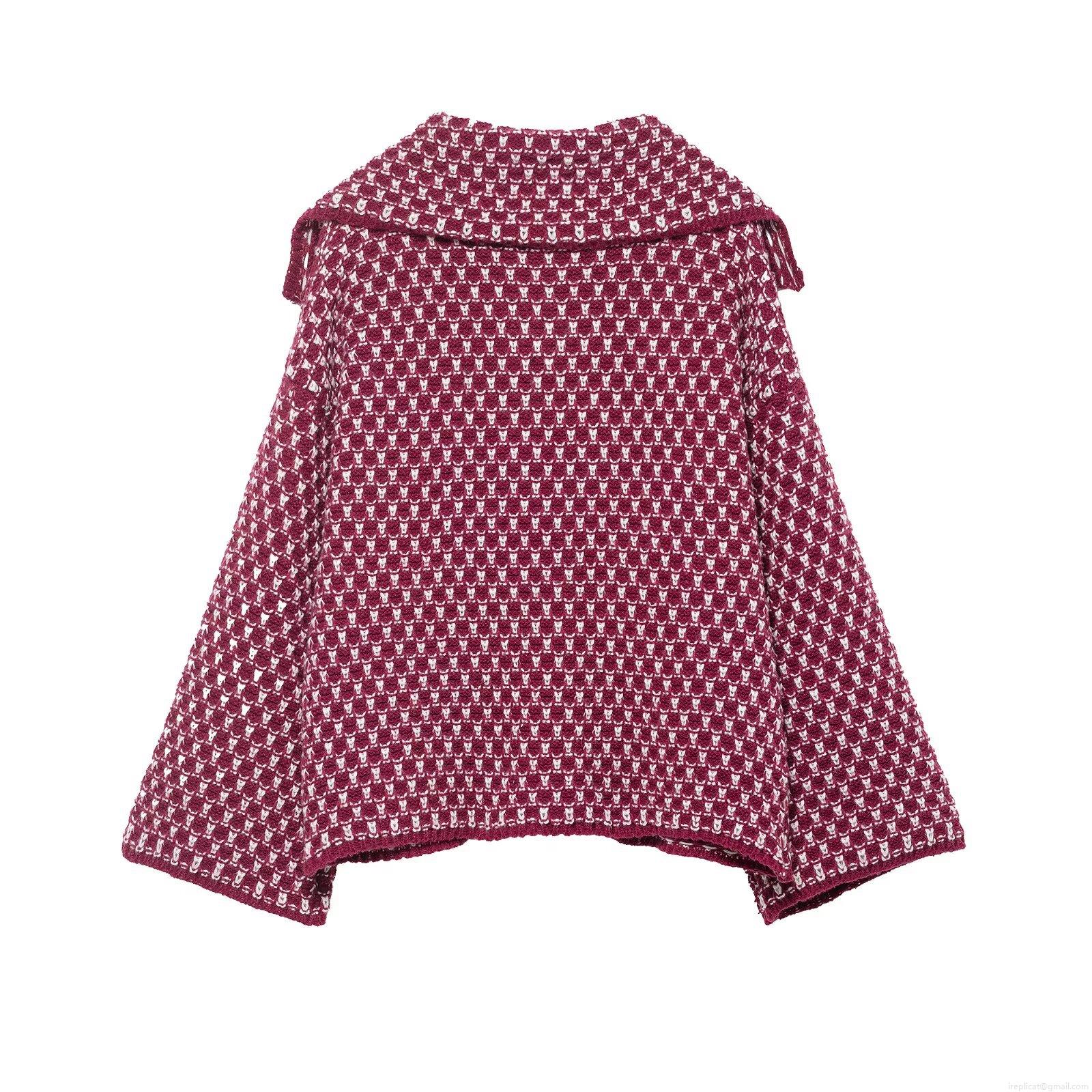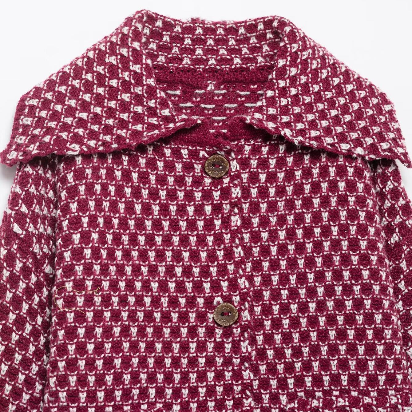 Women's Vintage Geometric Knit Cardigan Jacket Lapel Collar Single-breasted Long Sleeve Loose Sweater Coat For Casual Daily Wear