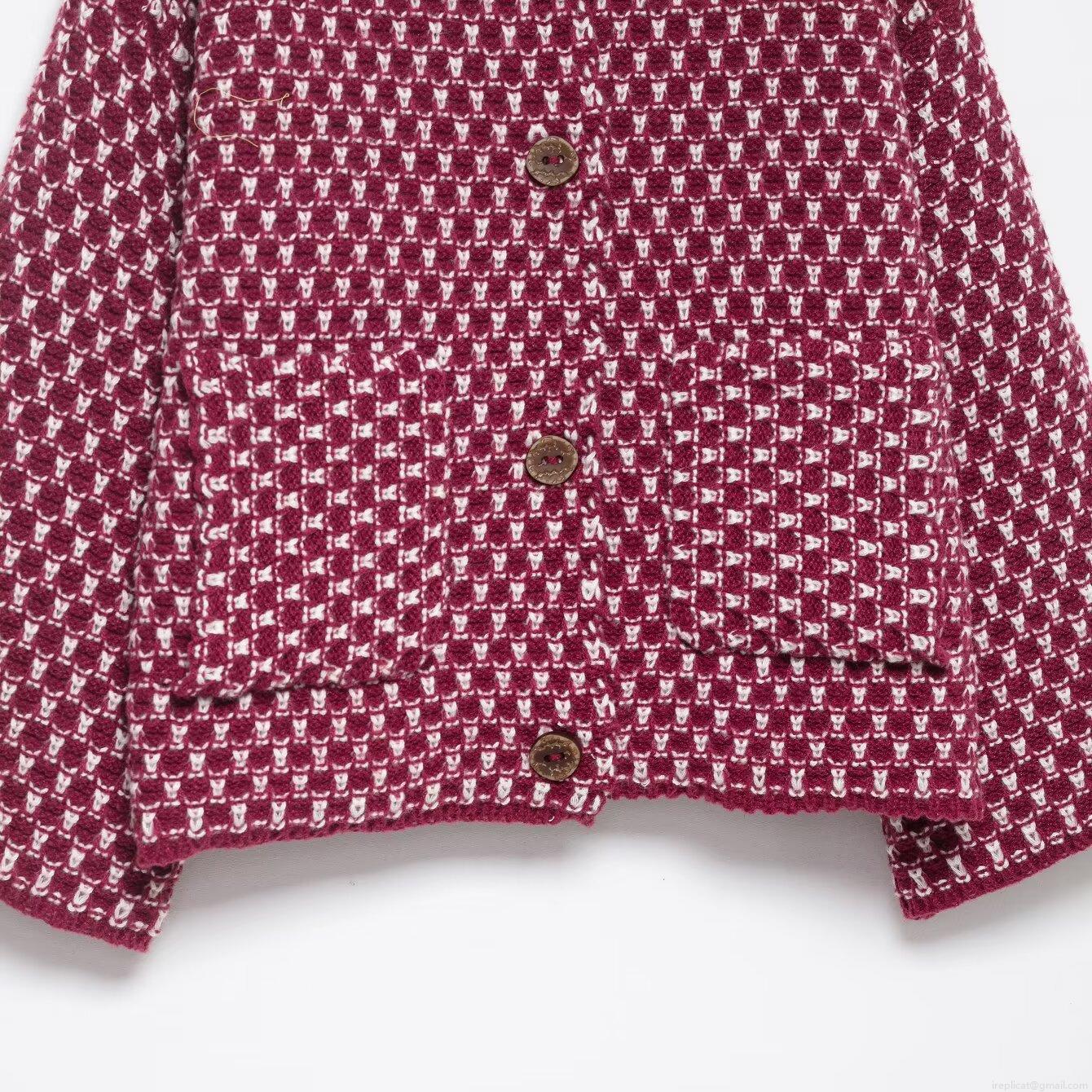 Jacquard, Houndstooth, Color Blocking, Single-breasted, Geometric Textures, Retro Buttons, Large Lapel