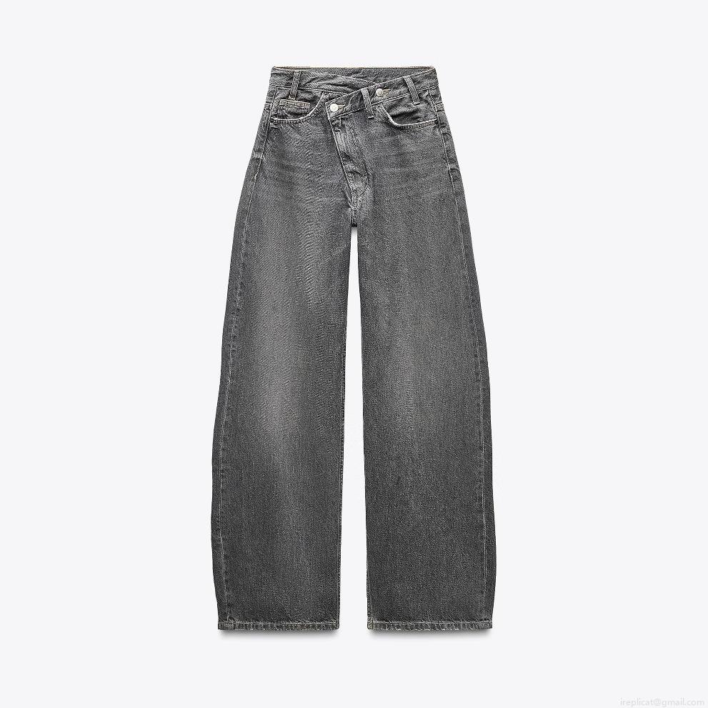 Solid Color, Zipper Decoration, Water Washing Process, Water Washing And Whitening, Asymmetrical Placket, Cross Waist
