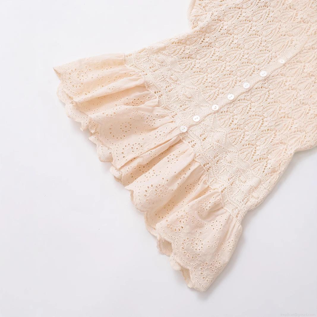 Openwork Crochet, Single-breasted Buttons, Retro Ruffled Hem
