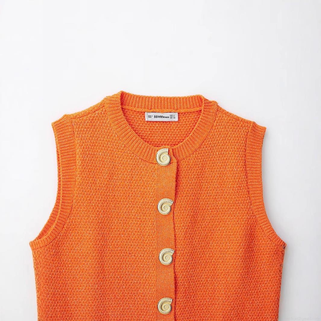 Women's Vintage Knit Button Up Vest Retro Solid Color Round Neck Sleeveless Sweater Cardigan Top With Metal Shell Shape Buttons Polyester