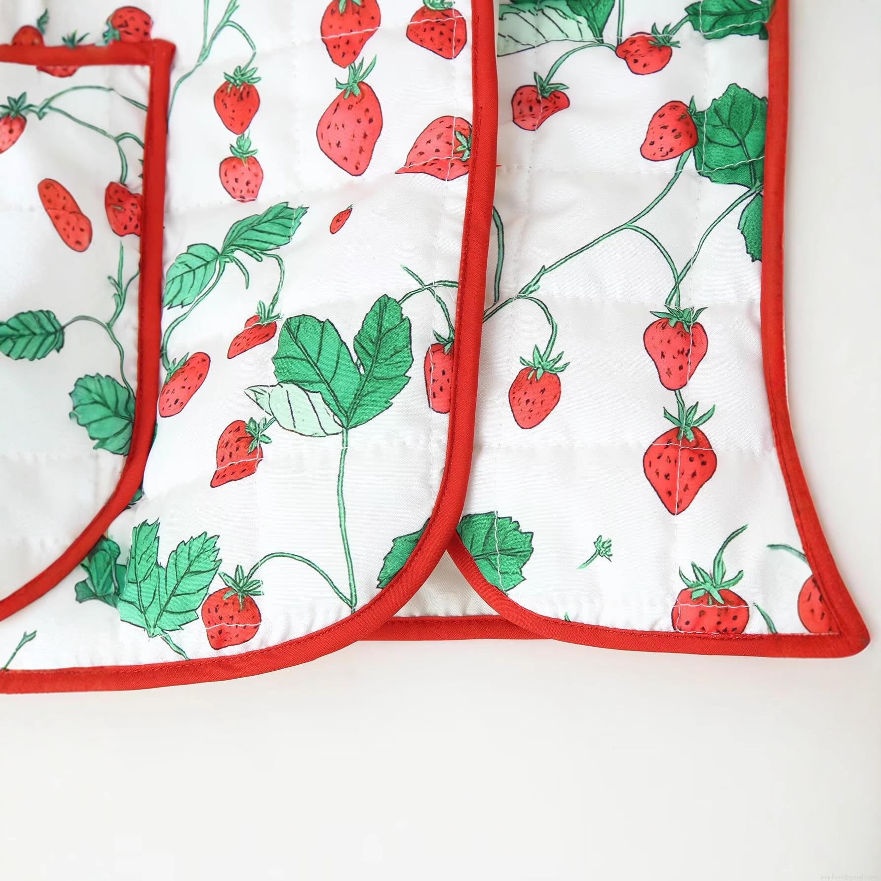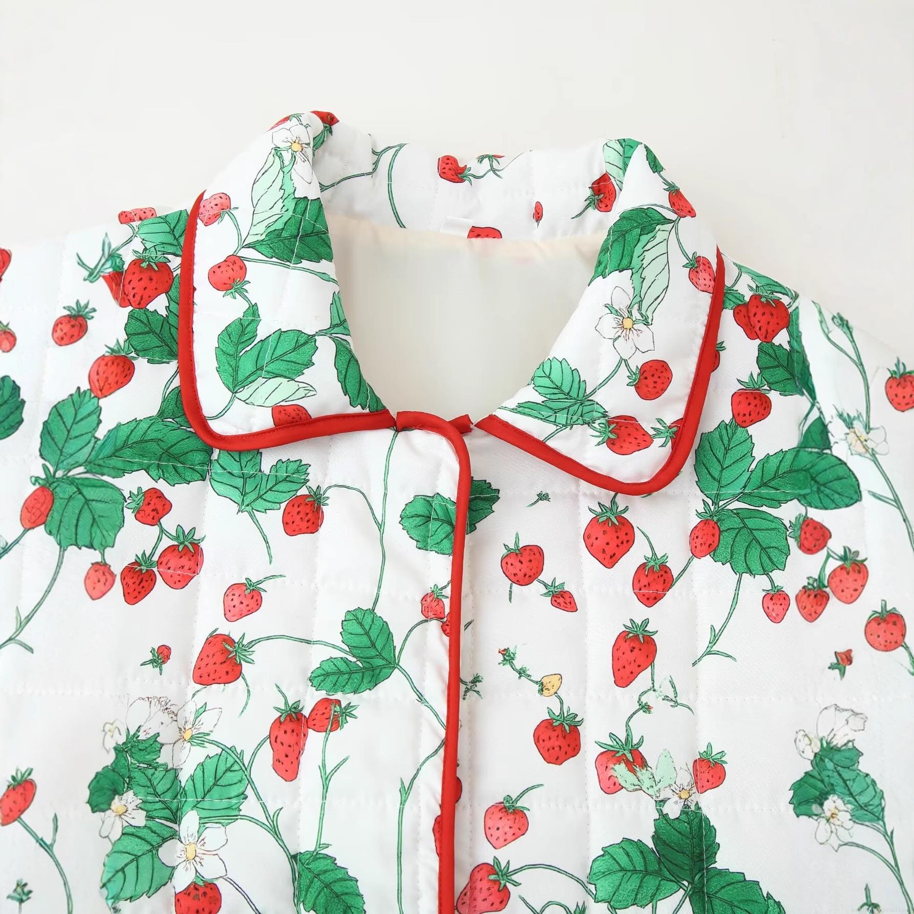 Women's Quilted Strawberry Print Padded Jacket Polyester Outer Cotton...