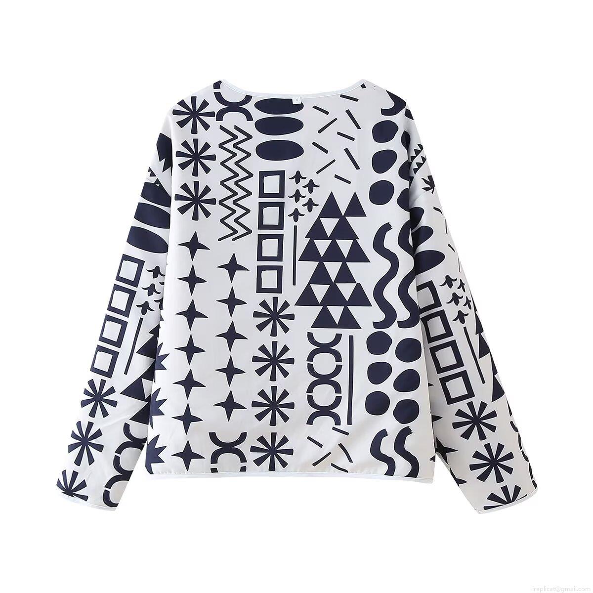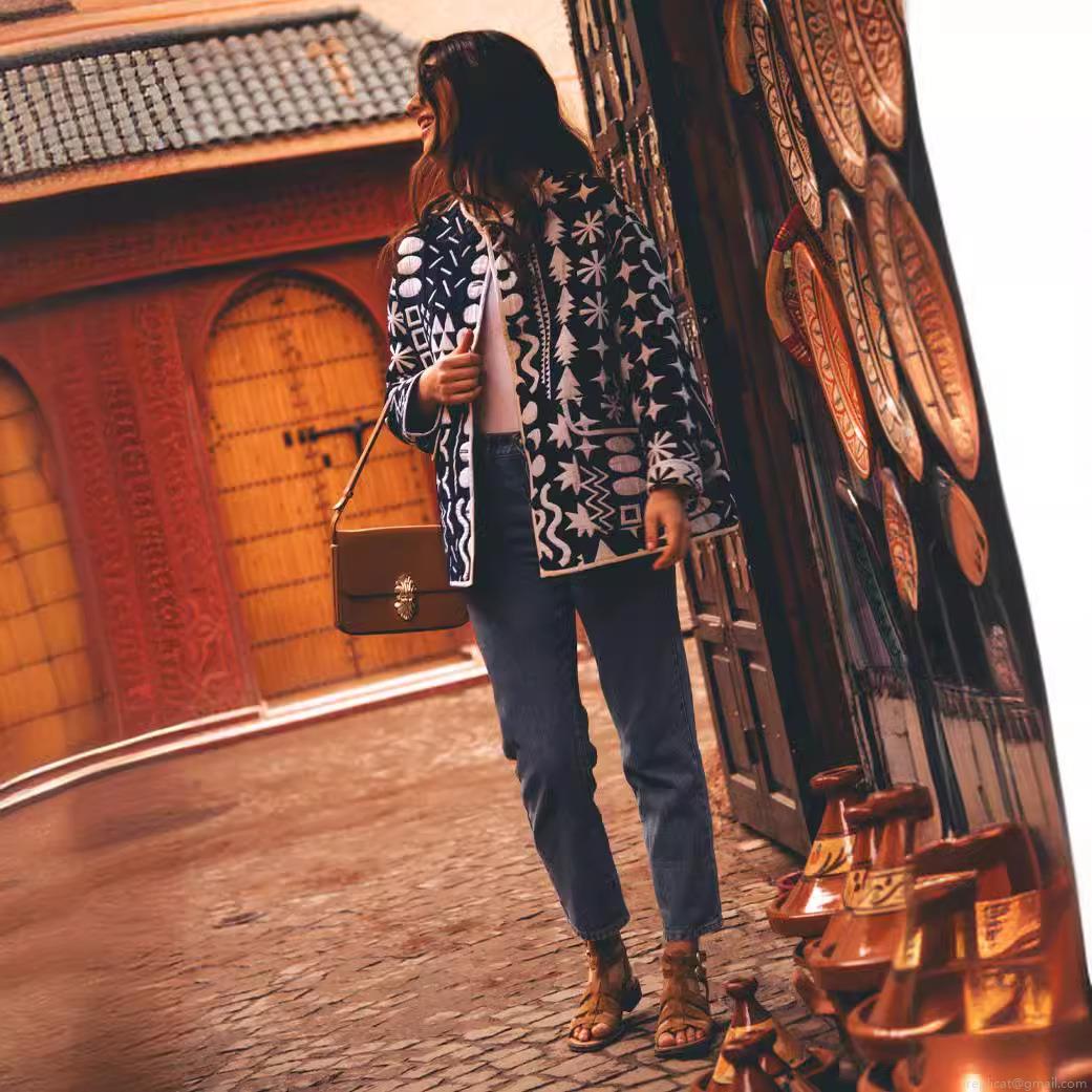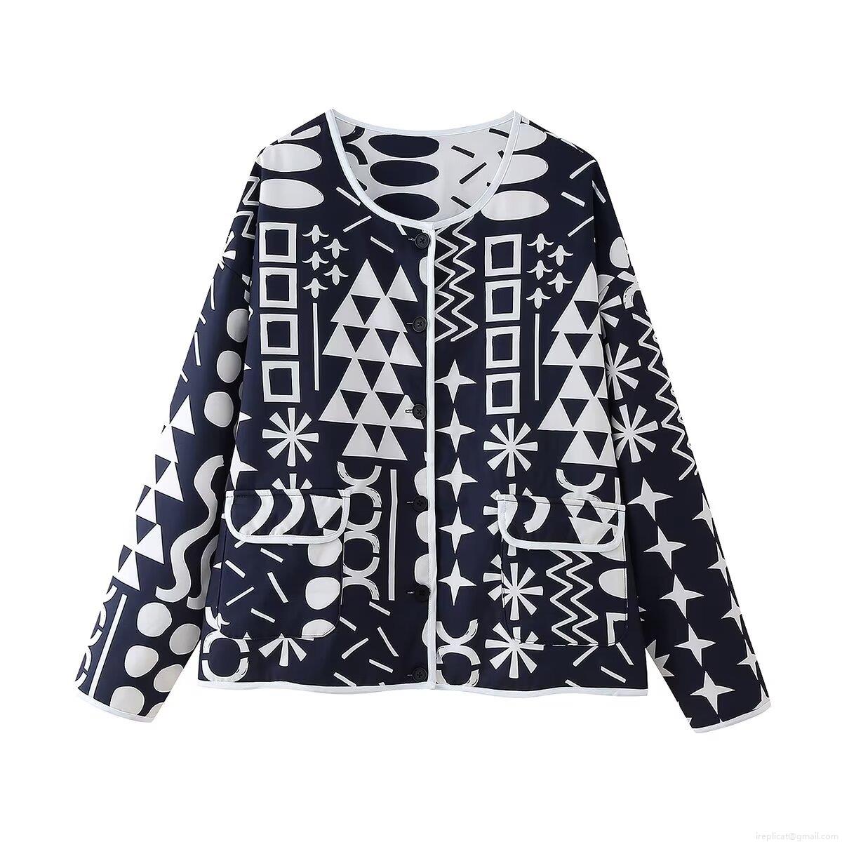 Women's Vintage Quilted Jacket Geometric Print Long Sleeve Round Neck Button Down Outerwear With Pockets Boho Tribal Pattern Casual Padded Coat For Lady