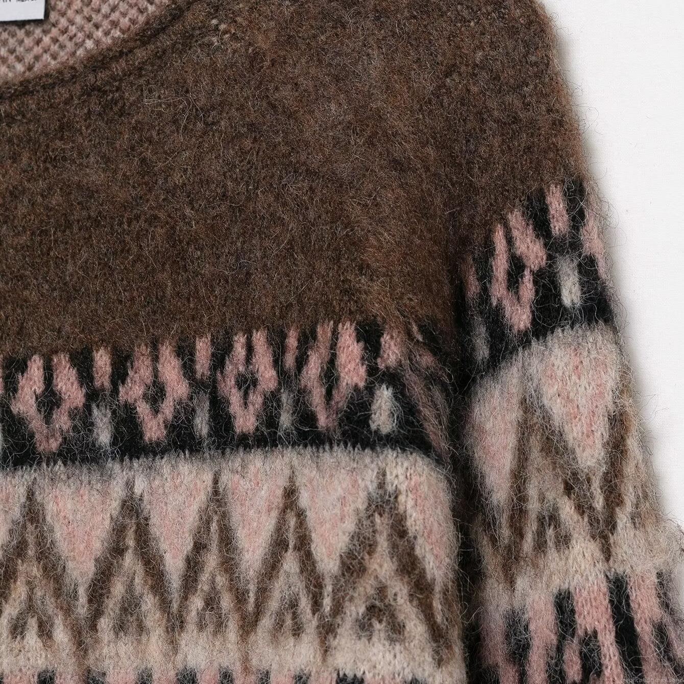 Women's Vintage Round Neck Geometric Jacquard Knitted Sweater Fair Isle Loose Fit Long Sleeve Soft Polyester Knit Pullover Top Autumn Casual Wear
