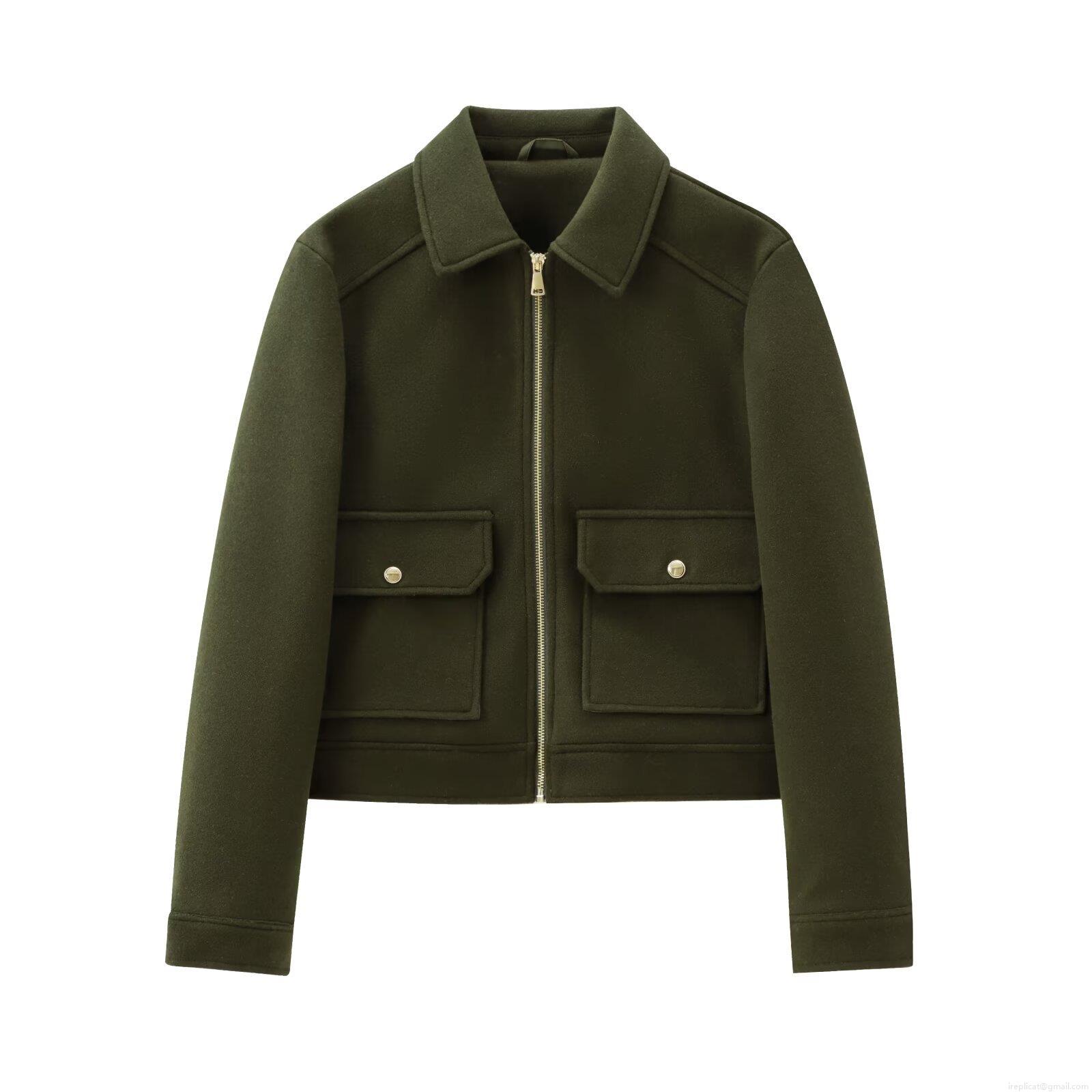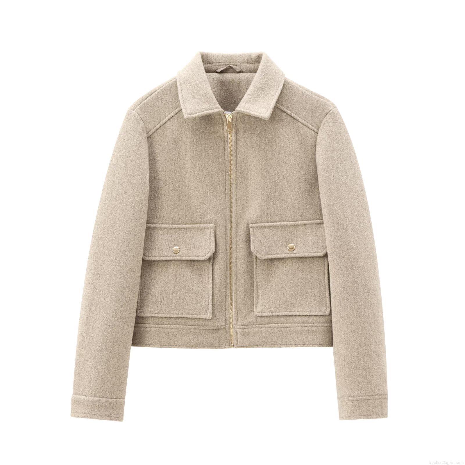 Women Short Lapel Woolen Texture Jacket Casual Long Sleeve Zipper...