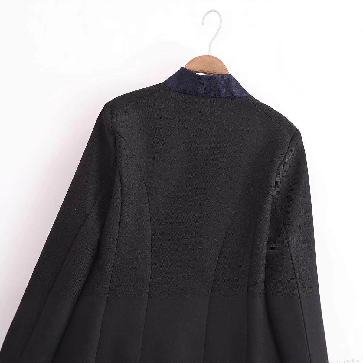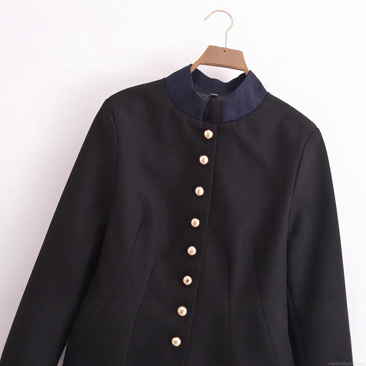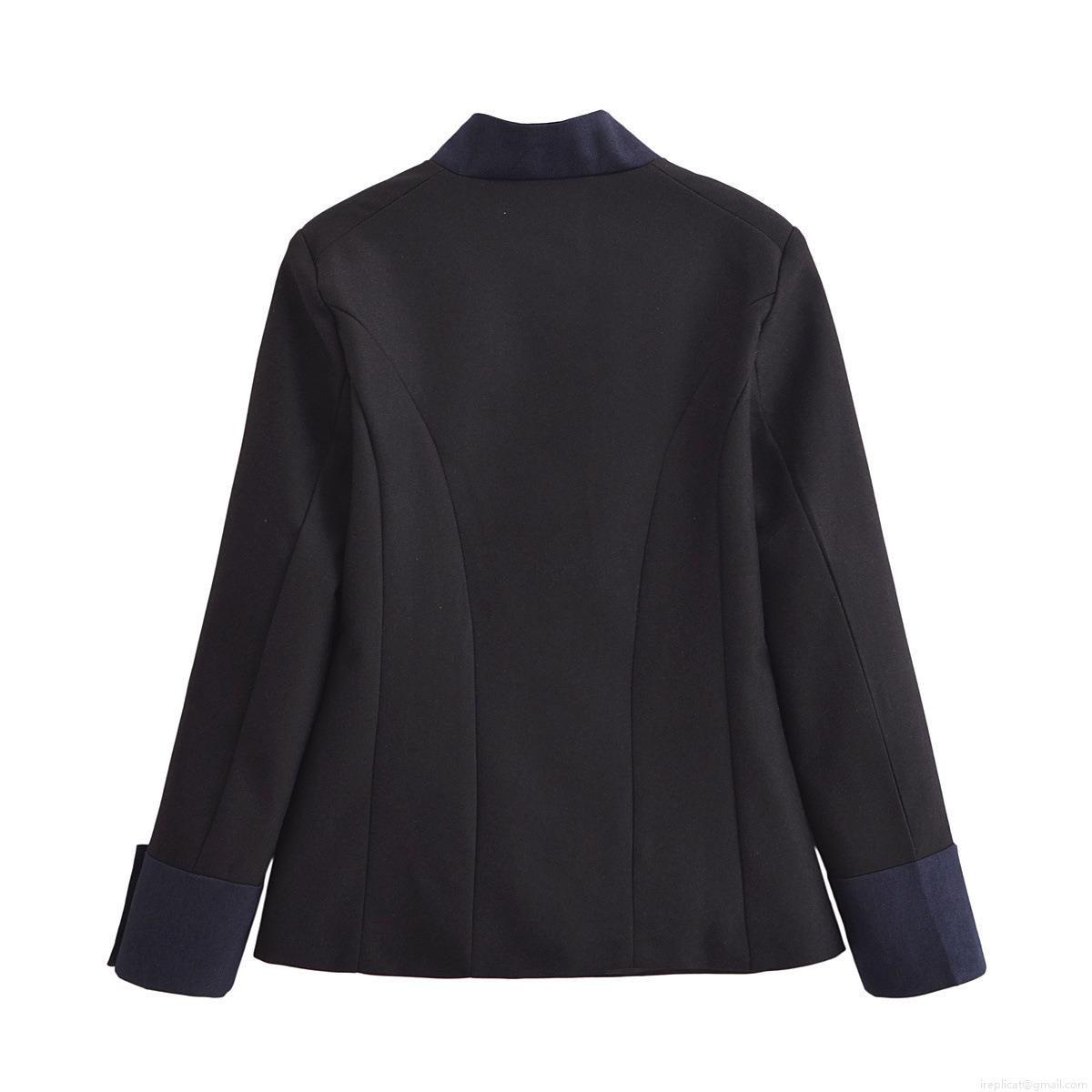 Women's Vintage Stand Collar Jacket With Gold Jewelry Buttons Black Contrast Patchwork Long Sleeve Outerwear For Streetwear Party Office Polyester Blazer Coat