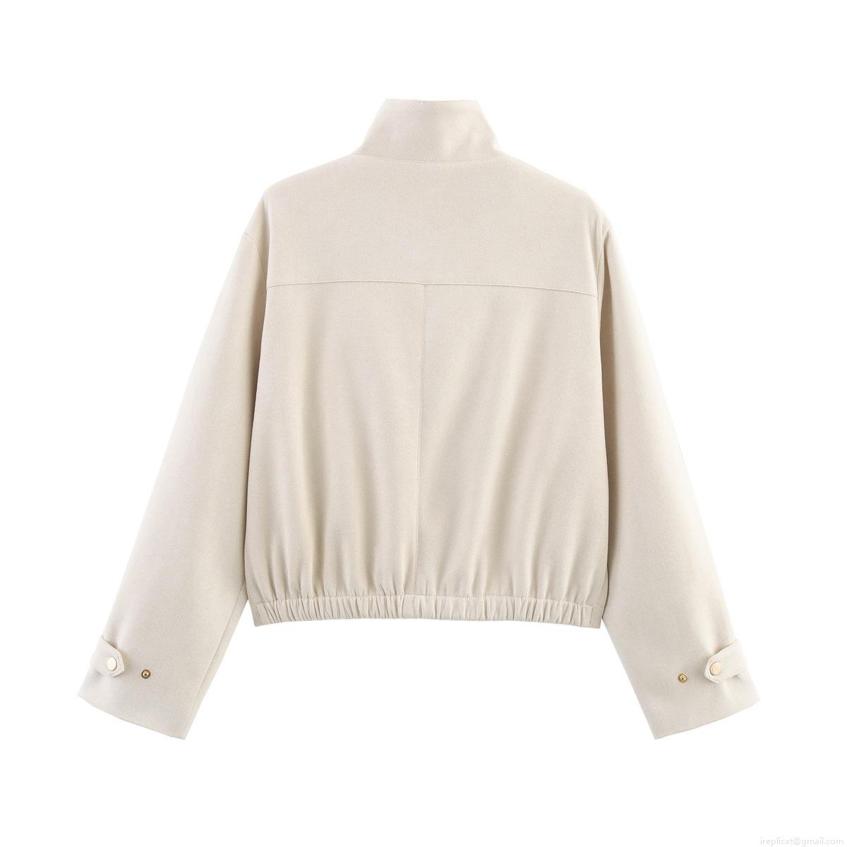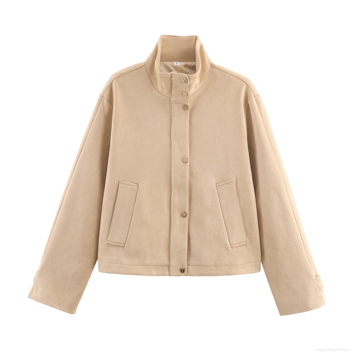 Women's Vintage Suede Jacket Stand Collar Short Outerwear With Metal Buttons Solid Color Loose Fit Casual Chic Coat Streetwear For Women Autumn Winter