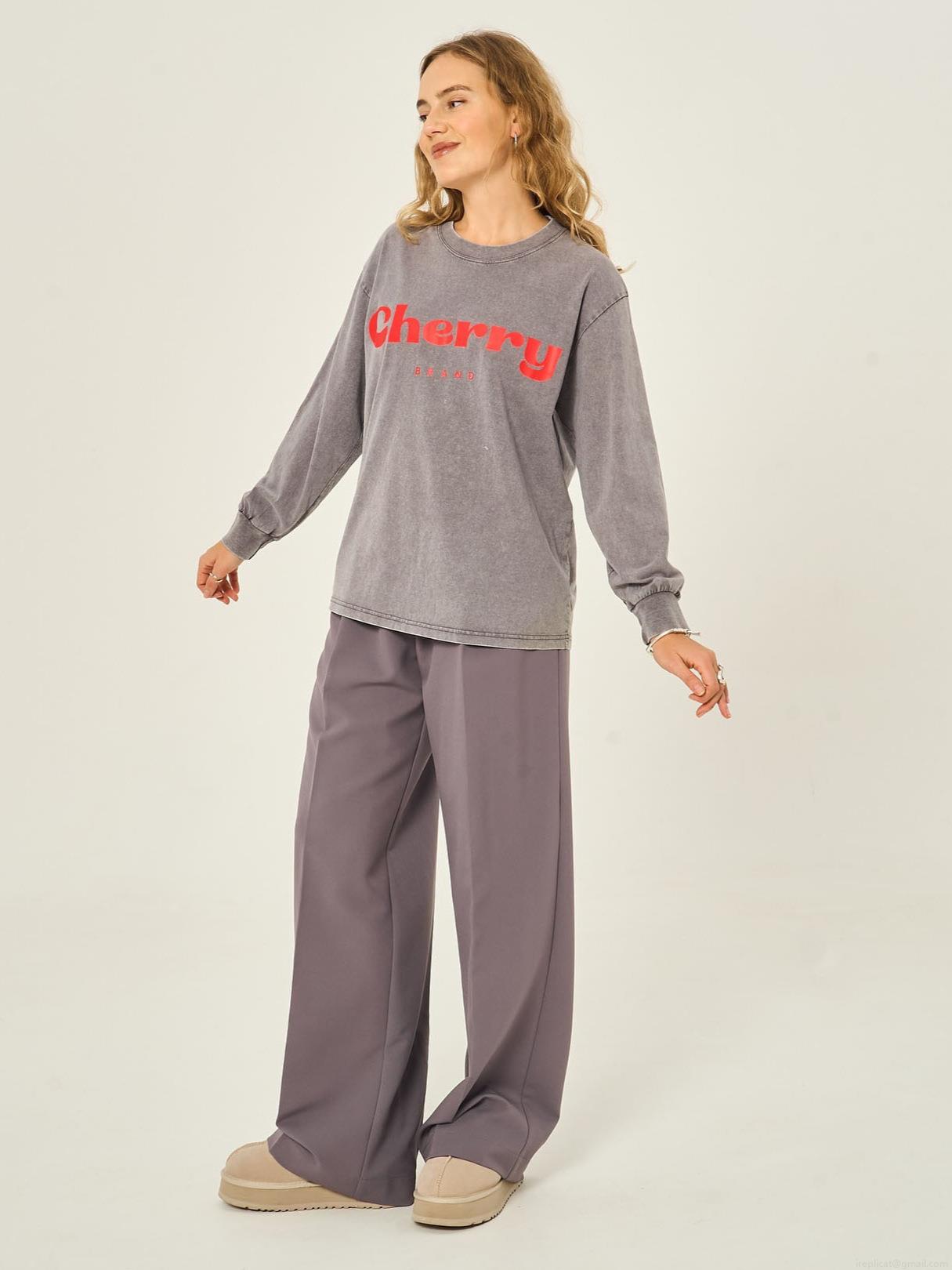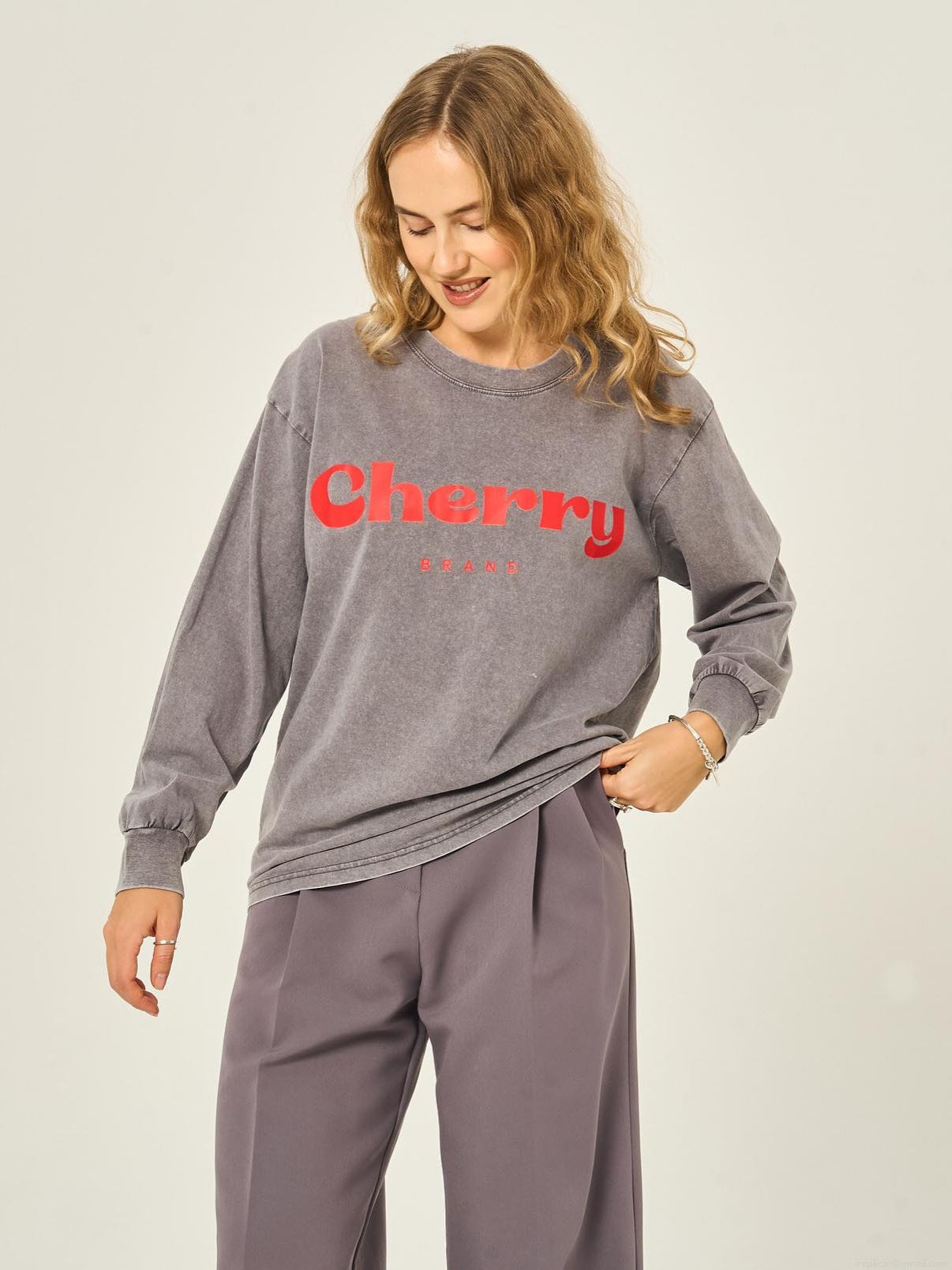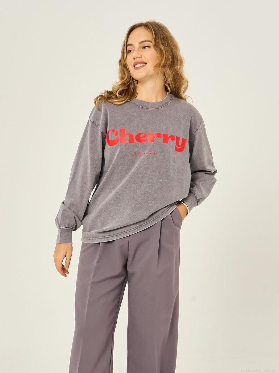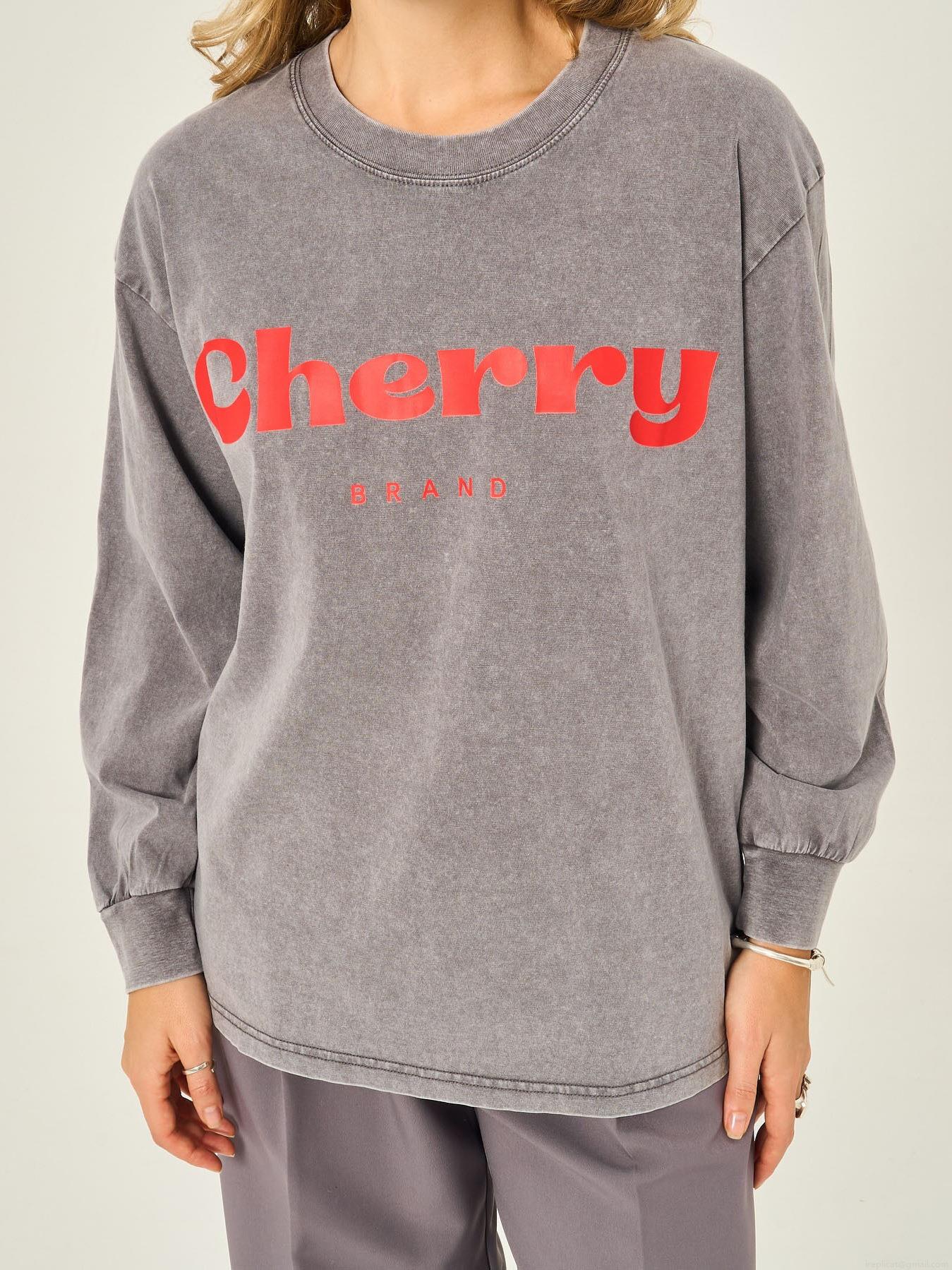 Women's Vintage Washed Heavy Cotton Long Sleeve T-Shirt Loose Fit Round Neck Letter Print Sweatshirt American Street Style Casual Pullover Top