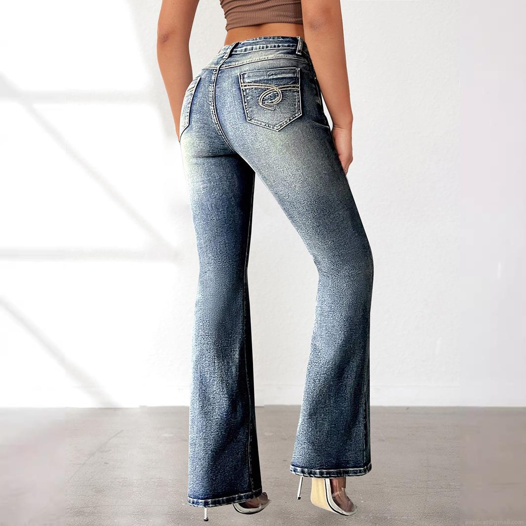 Women's Vintage Washed High Stretch Denim Flare Jeans Slim Fit Hip Lift Micro Flared Pants With Back Pocket Embroidery Streetwear Casual Denim Trousers
