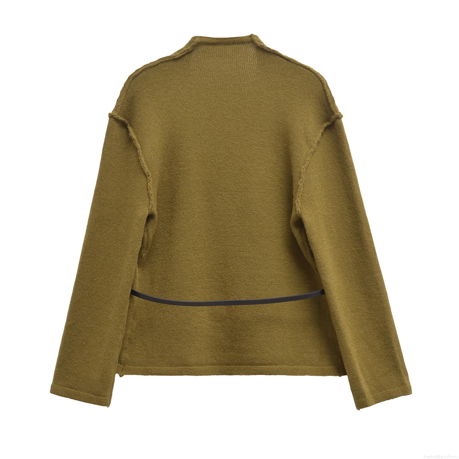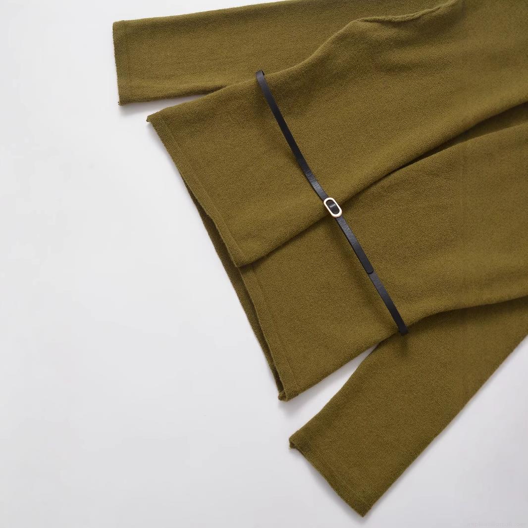Women's V-Neck Knit Cardigan Coat With Belt Long Sleeve Solid Olive Green Fashion Streetwear Outerwear For Ladies Winter