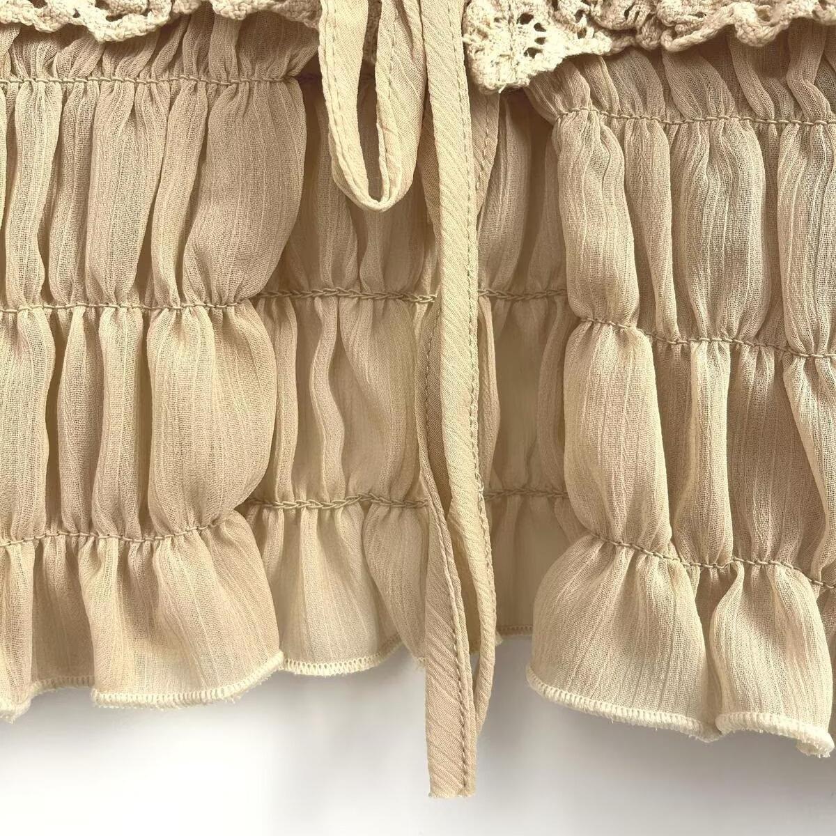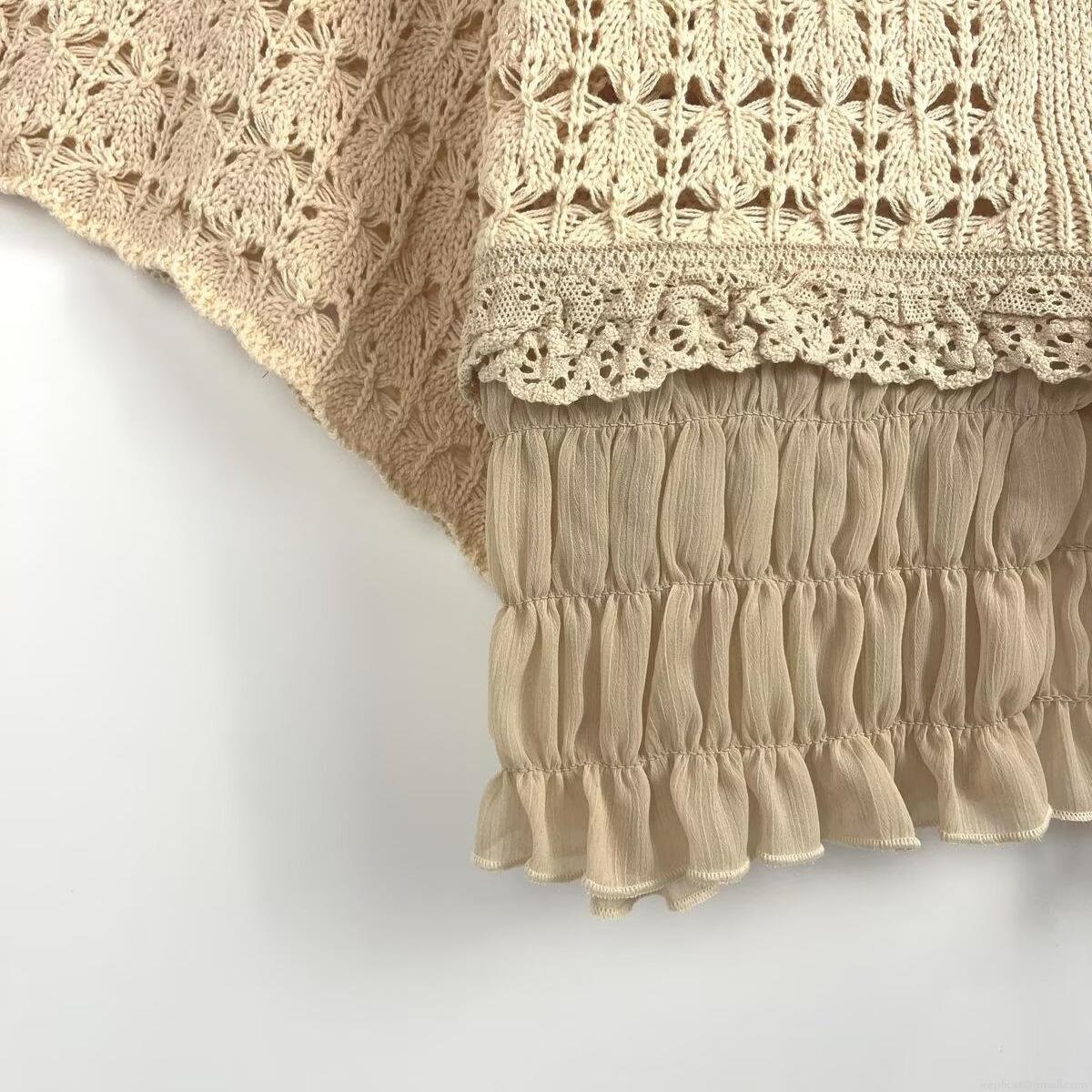 Solid Color, Wood Ear Edge, Hollow Out, Lace, Lace Patchwork, Openwork, Chiffon Pleats