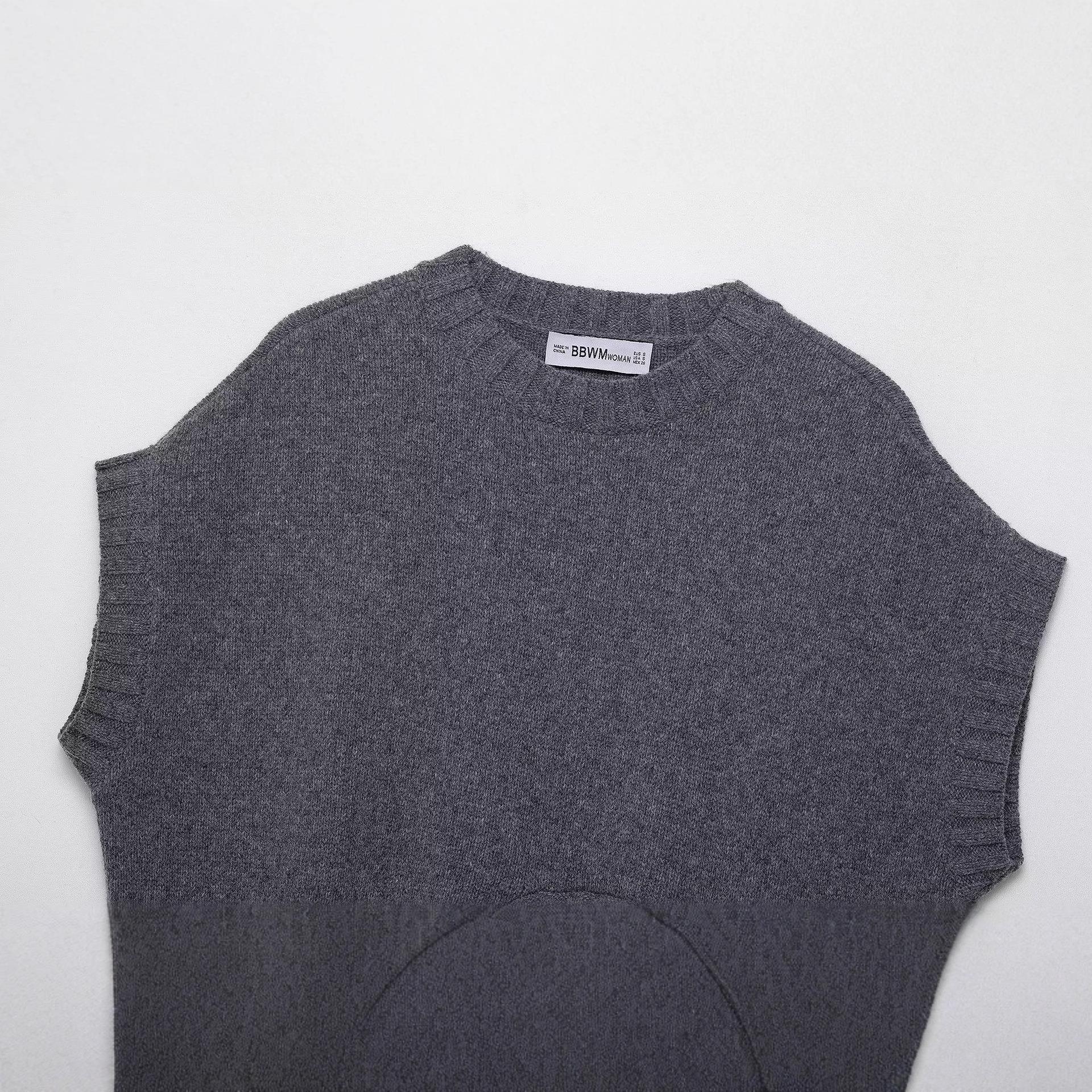 Solid Color, V-neck, Chunky Knit Texture, Sleeveless Design, Asymmetrical Hem