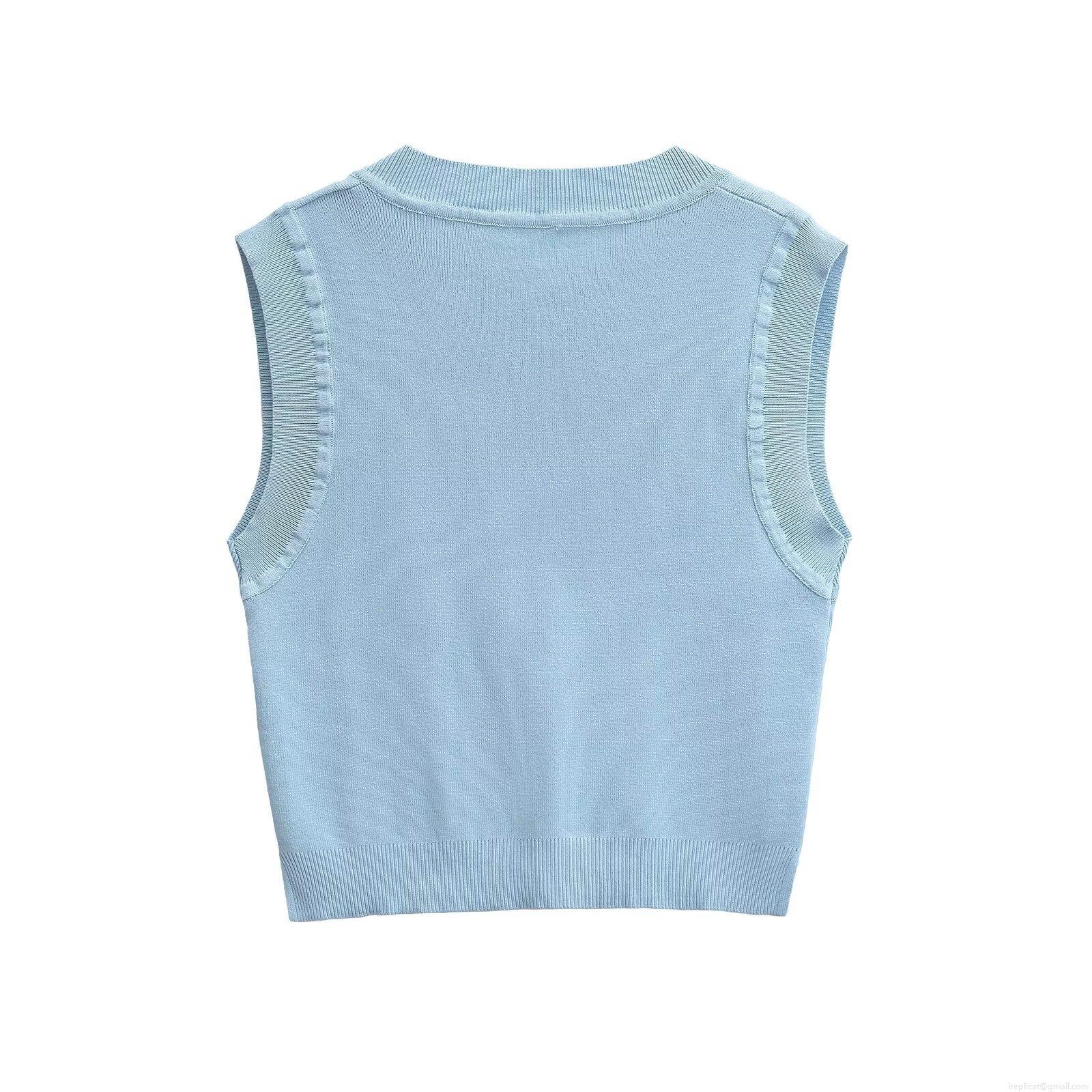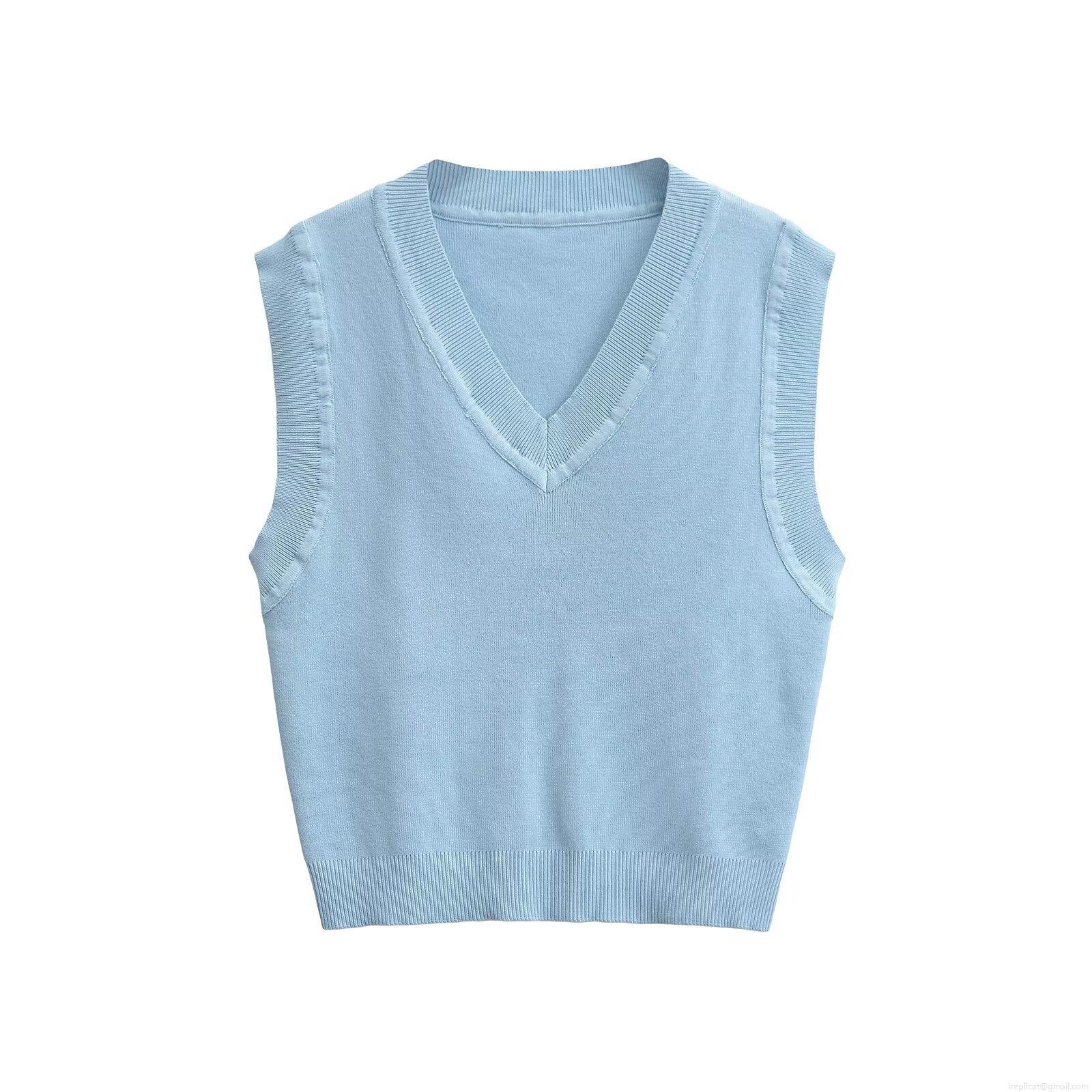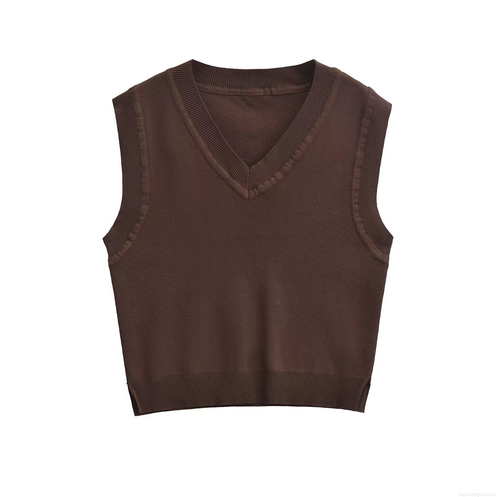Women's V-Neck Knit Vest Sleeveless Pullover Sweater Waistcoat Casual Solid Color Side Slit Ribbed Trim Knitwear Top