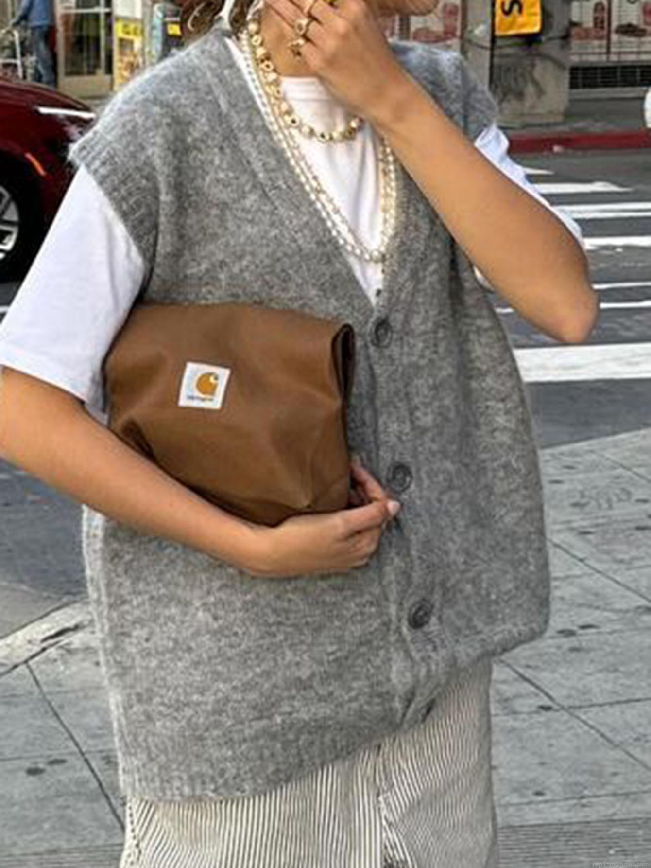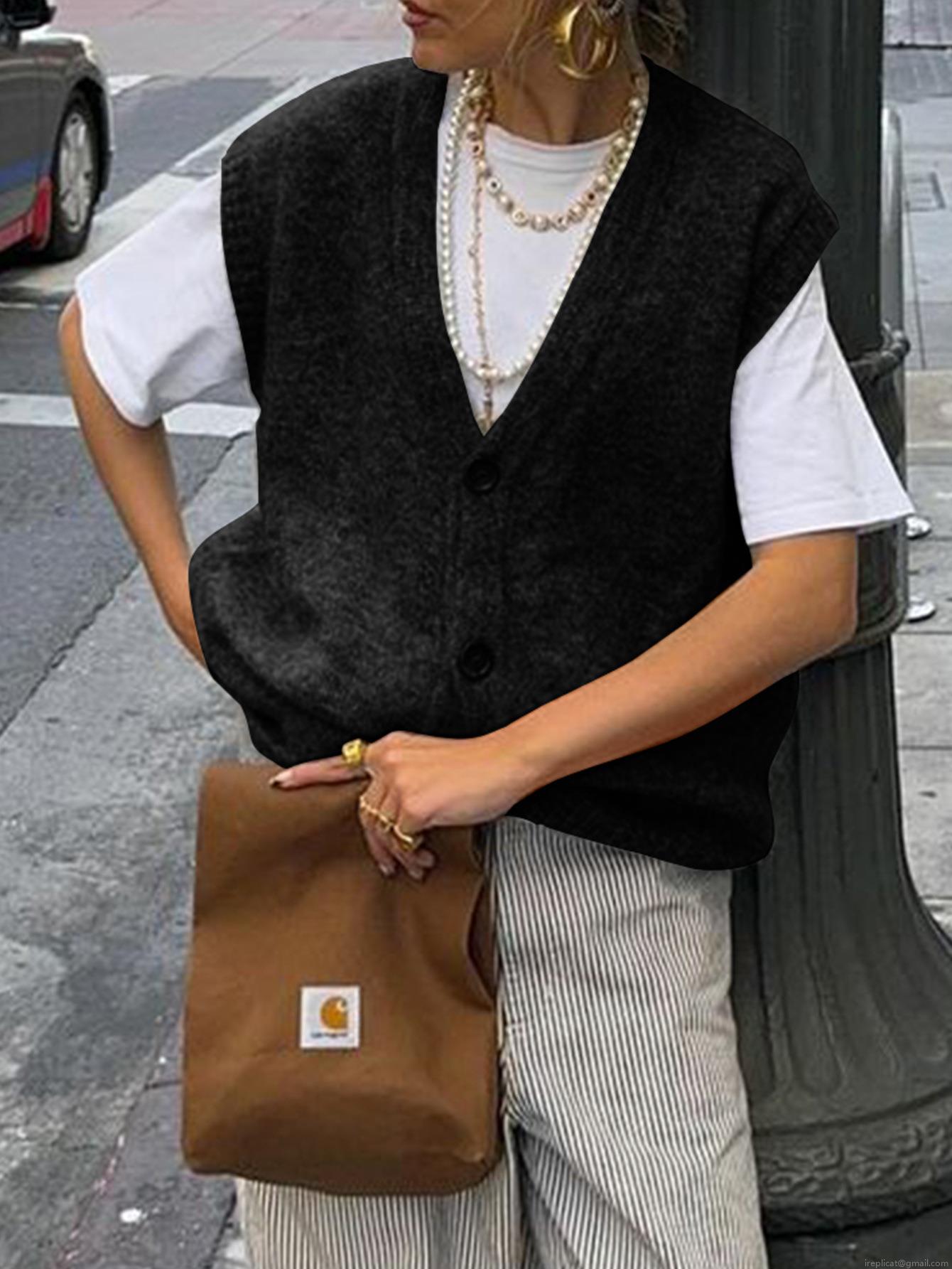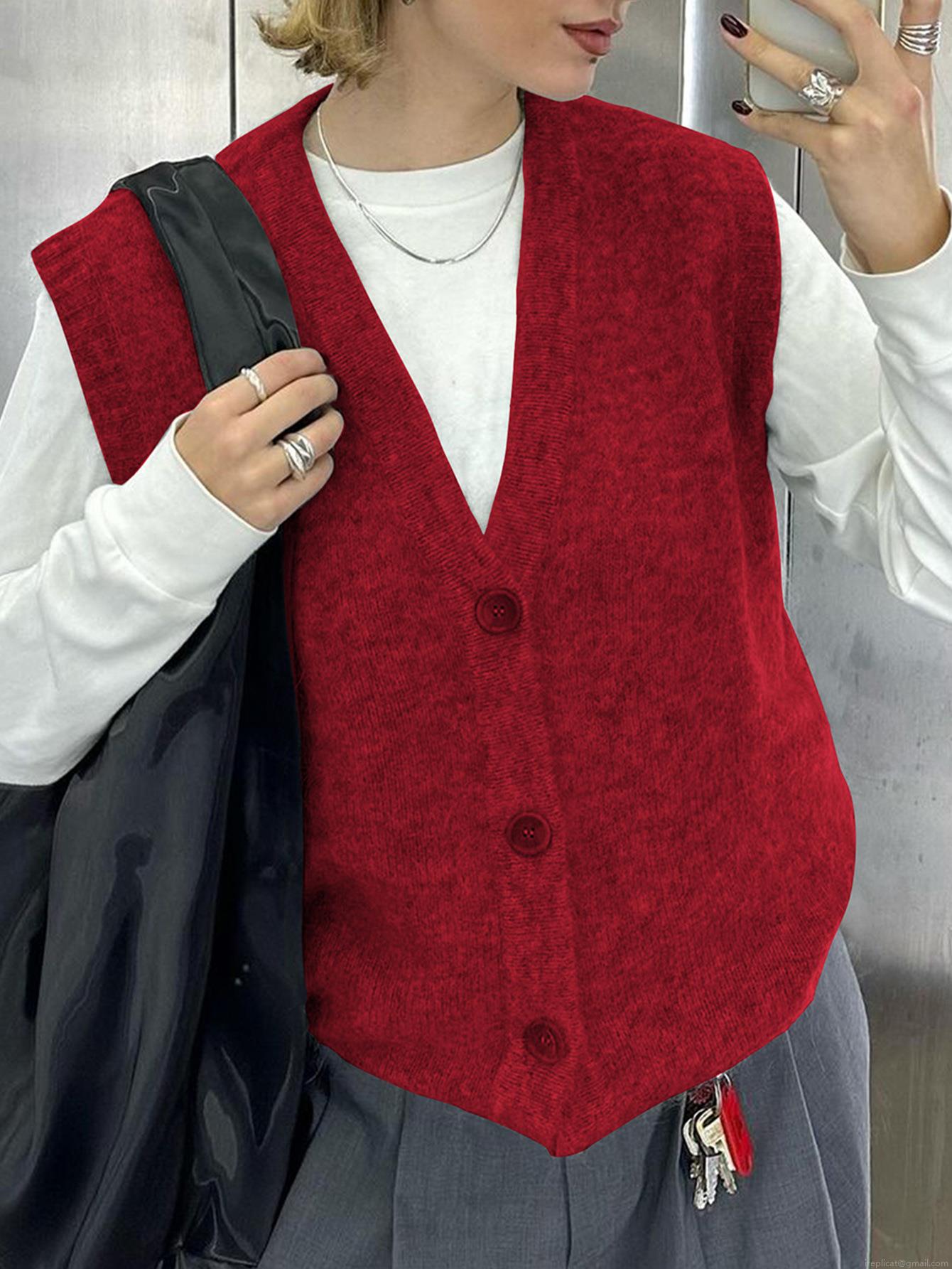 Women's V-Neck Knitted Vest Button Up Loose Sleeveless Sweater Waistcoat Polyester Wool Blend Knitwear Casual Streetwear Outerwear For Women