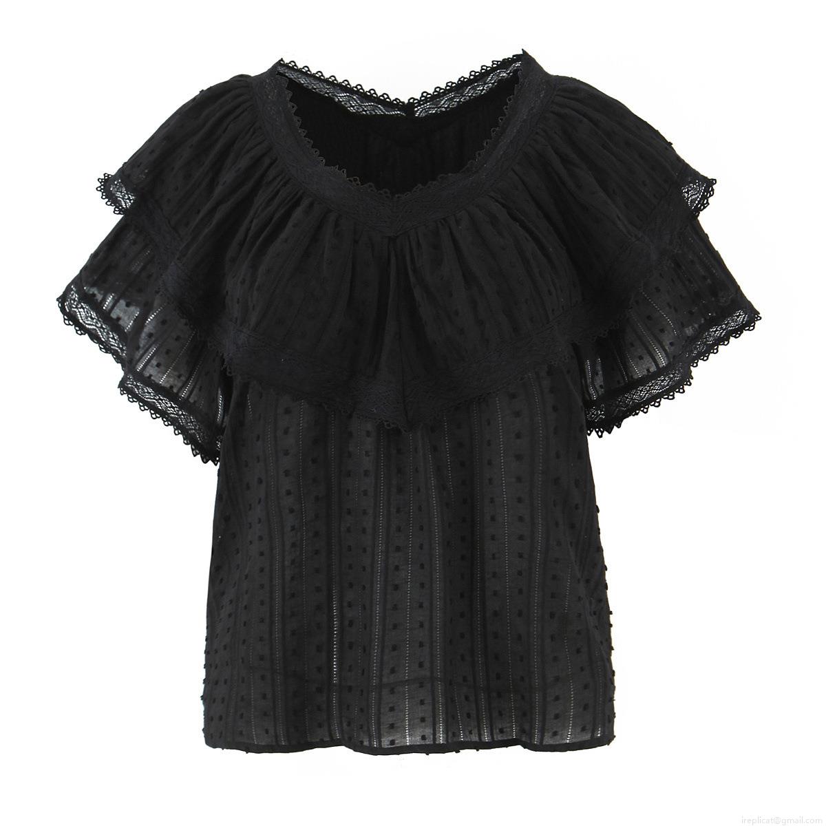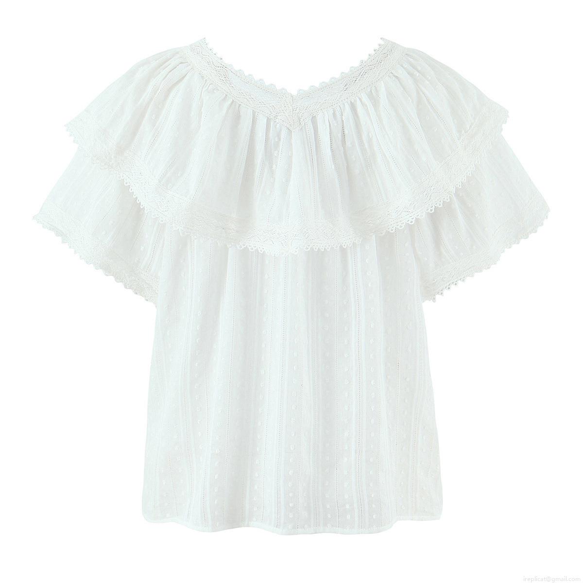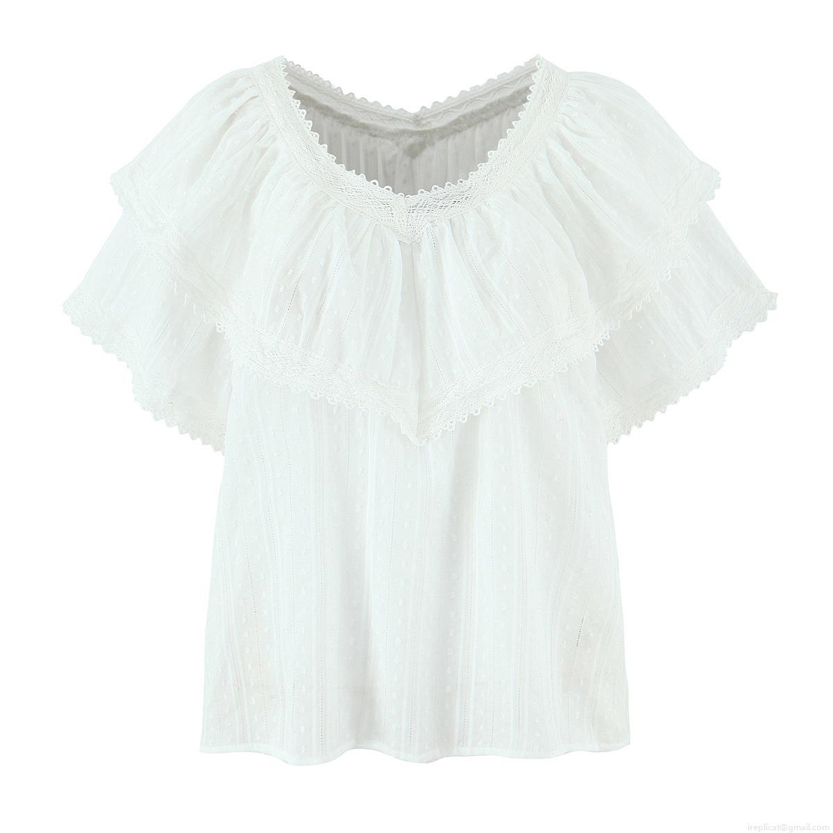 Women's V-Neck Lace Trim T-Shirt 100% Cotton Short Sleeve Ruffle Edge Blouse Summer Casual Loose Top Street Style For Women