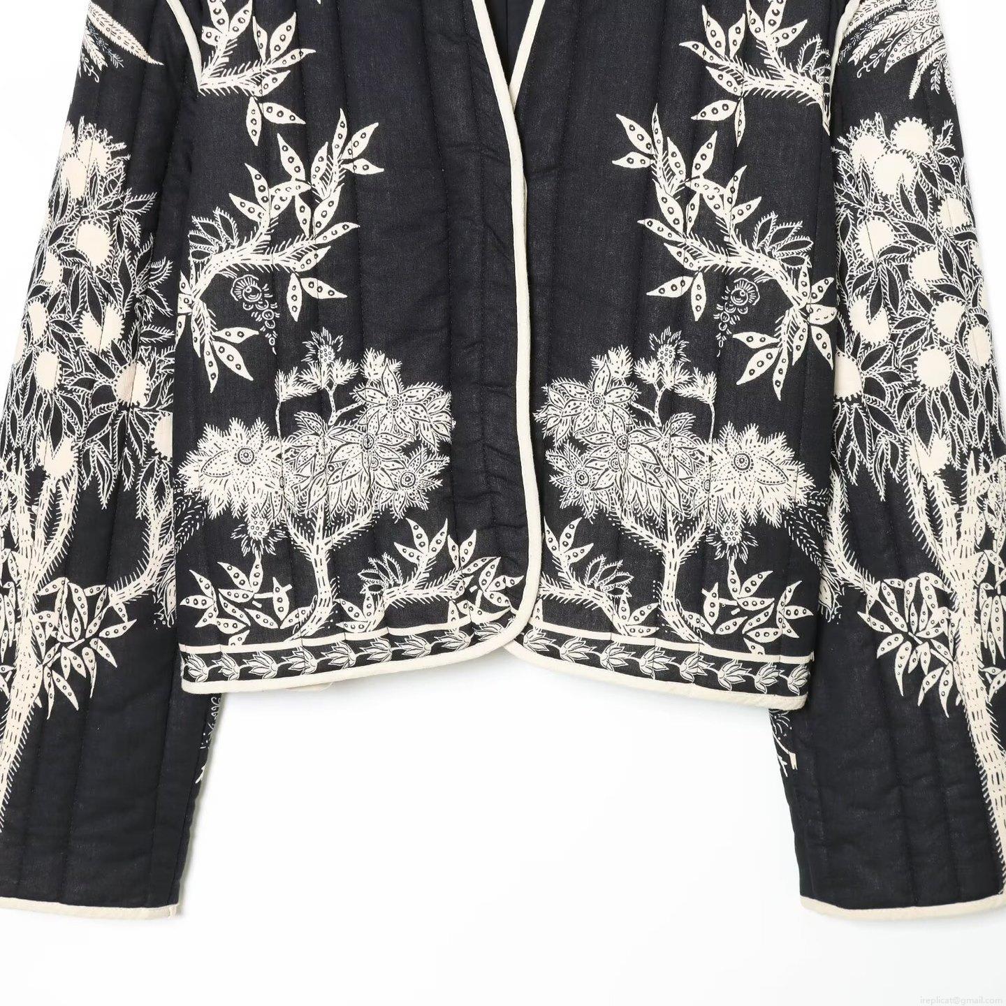 Women's Vintage Blue Floral Embroidery Jacket Long Sleeve Tie-up...
