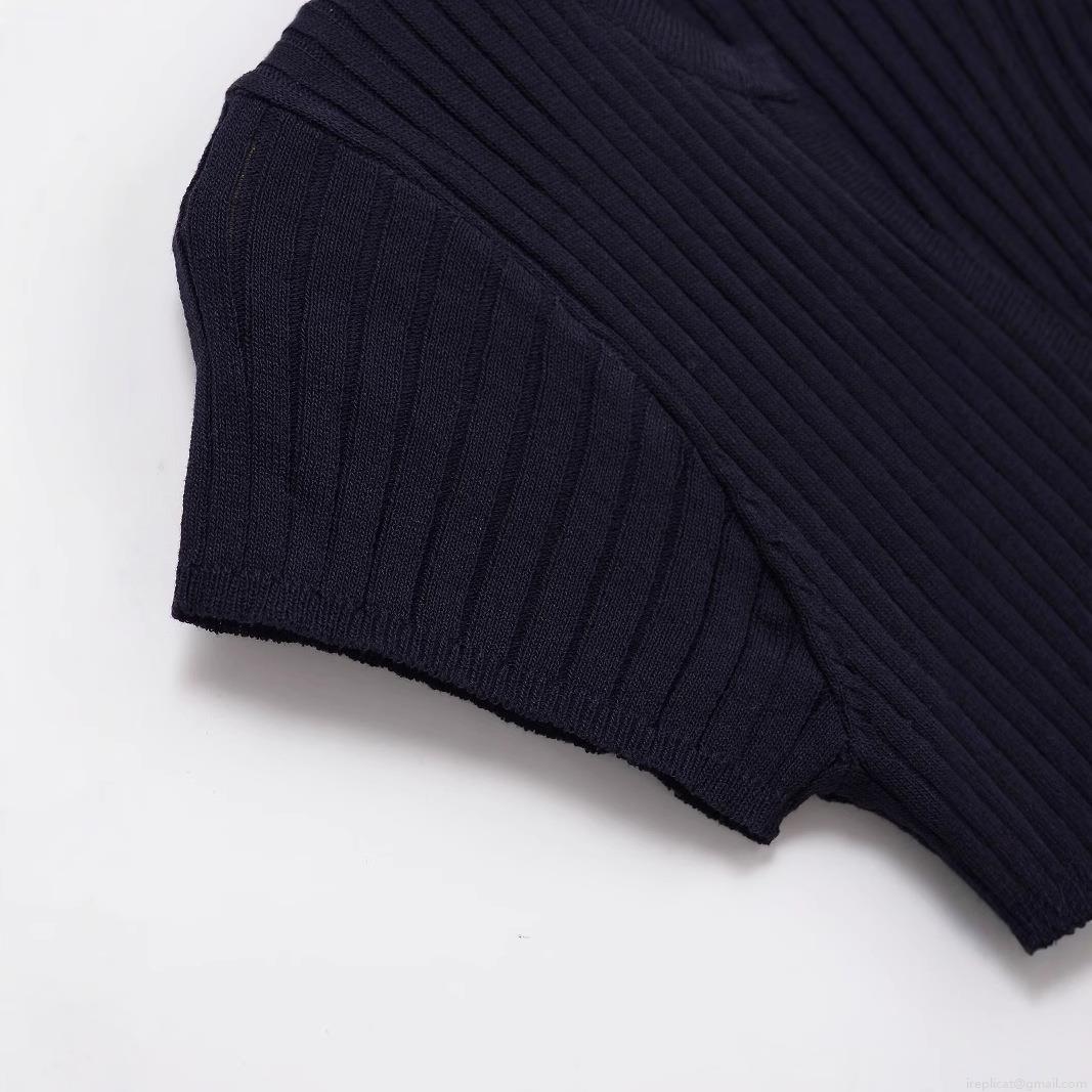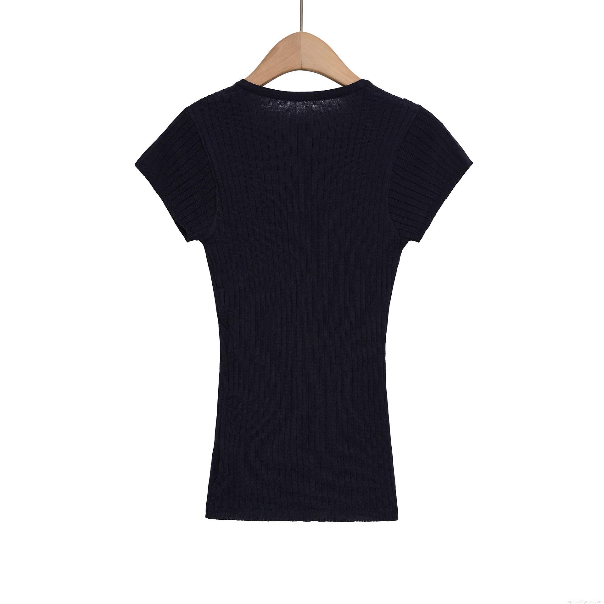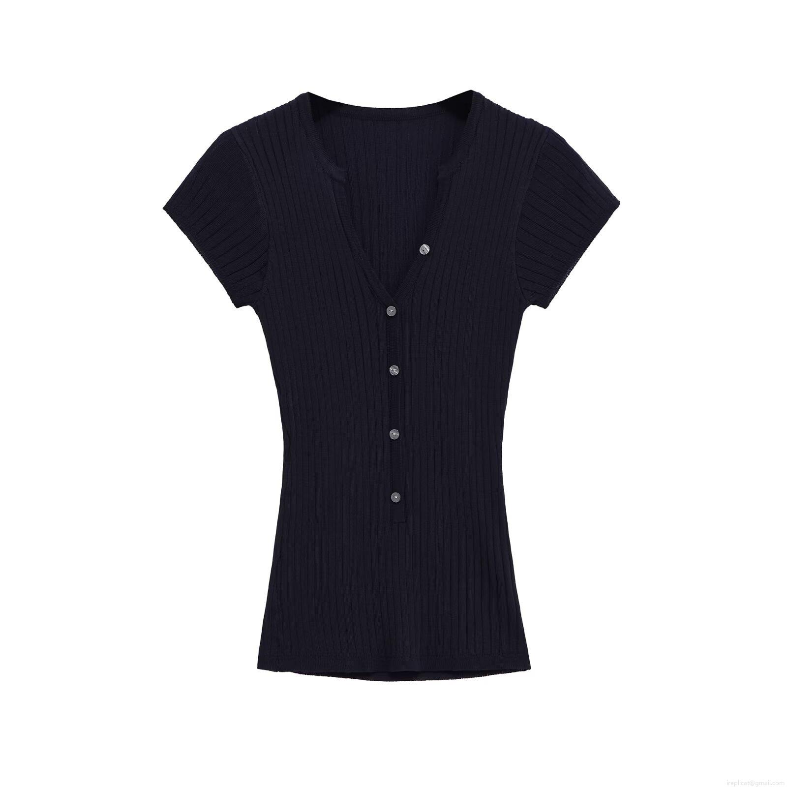 Women's V-Neck Slim Fit Knit T-Shirt Ribbed Viscose Nylon Blend Short Sleeve Single Breasted Button Down Solid Color Casual Summer Top