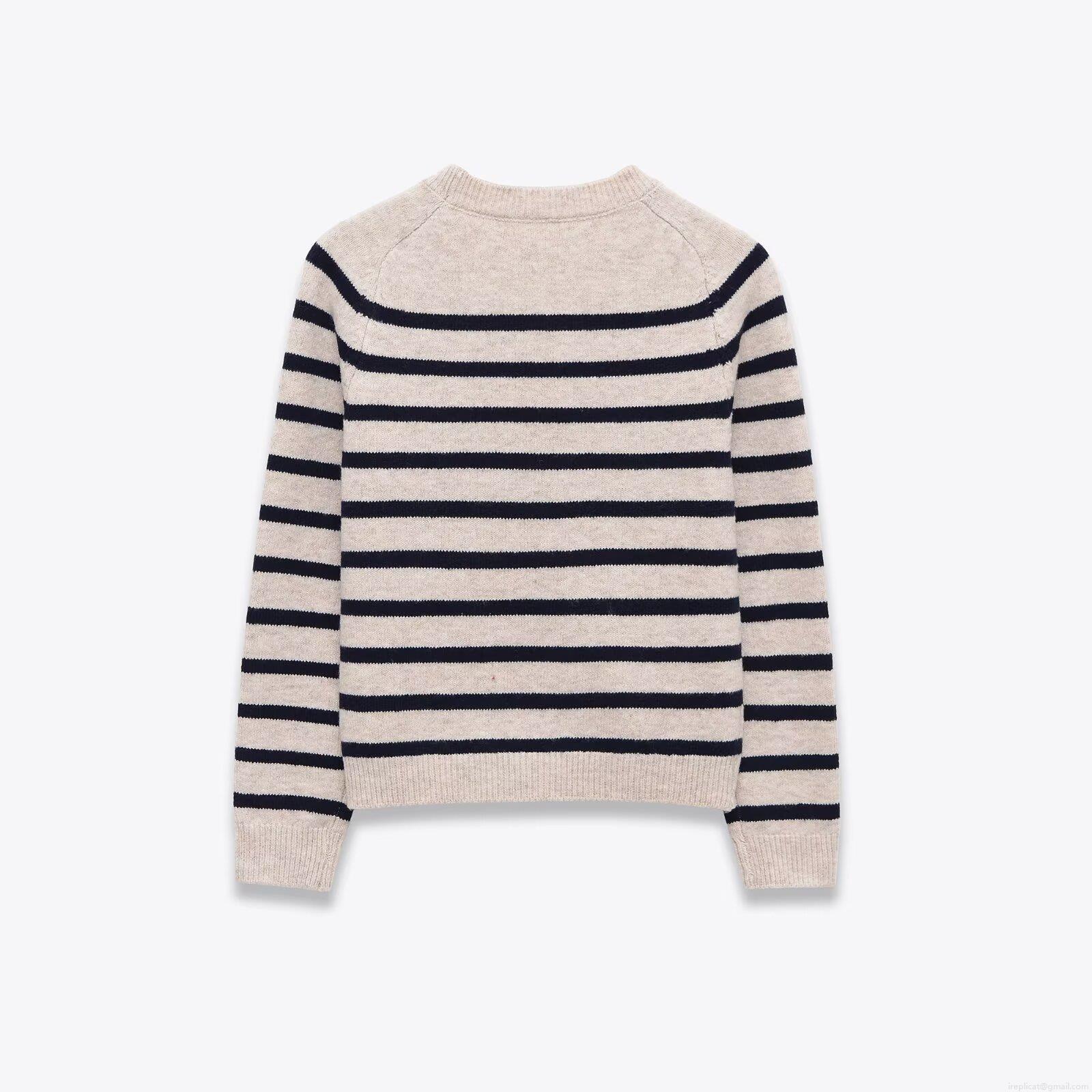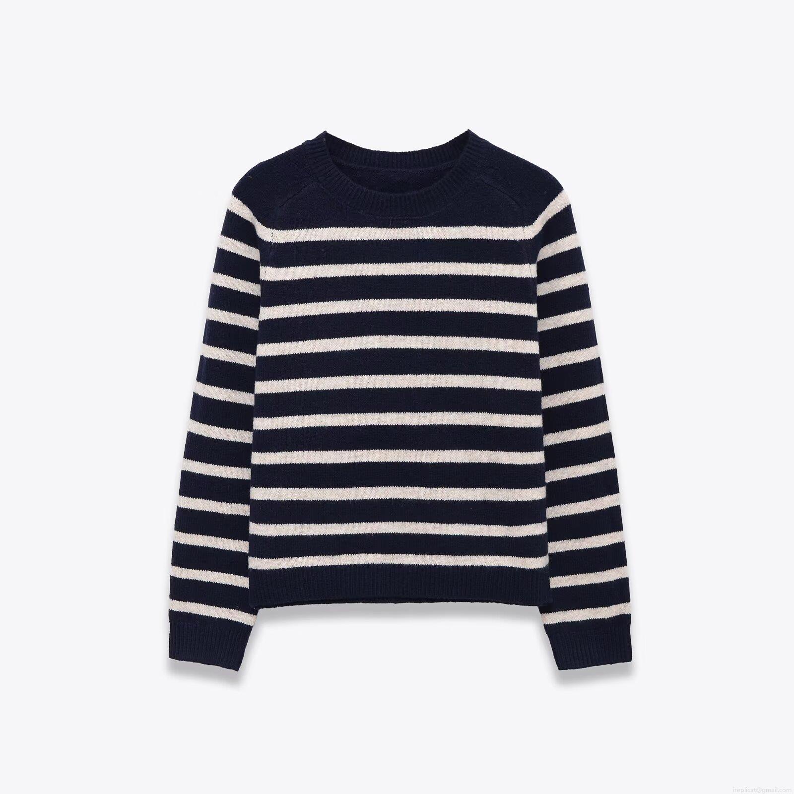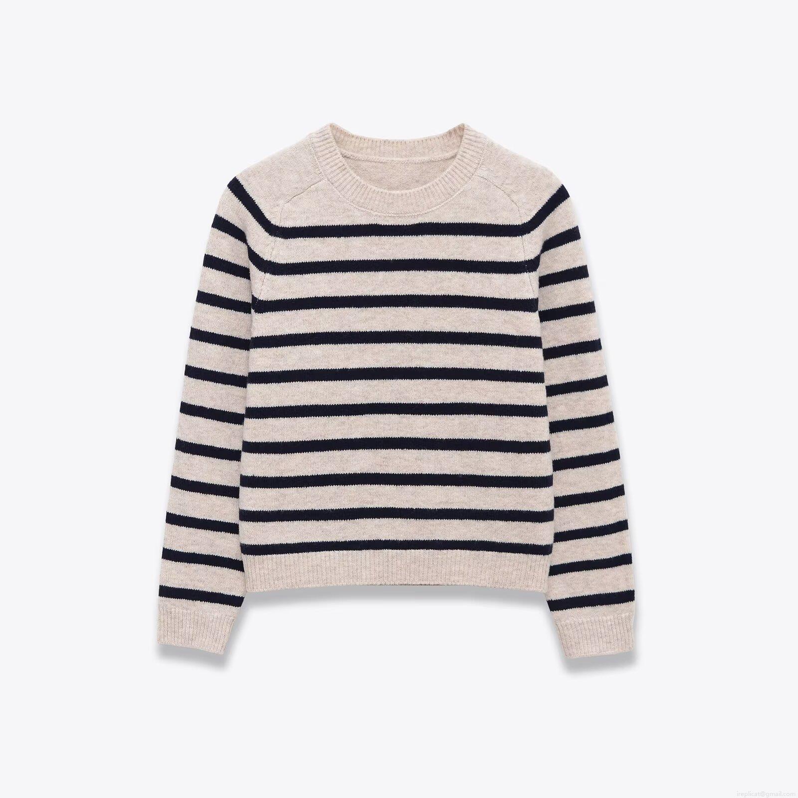 Women's Western Style Striped Sweater Polyester Knit Round Neck Long Raglan Sleeve Contrast Color Loose Fit Pullover Knitwear Top For Daily Streetwear