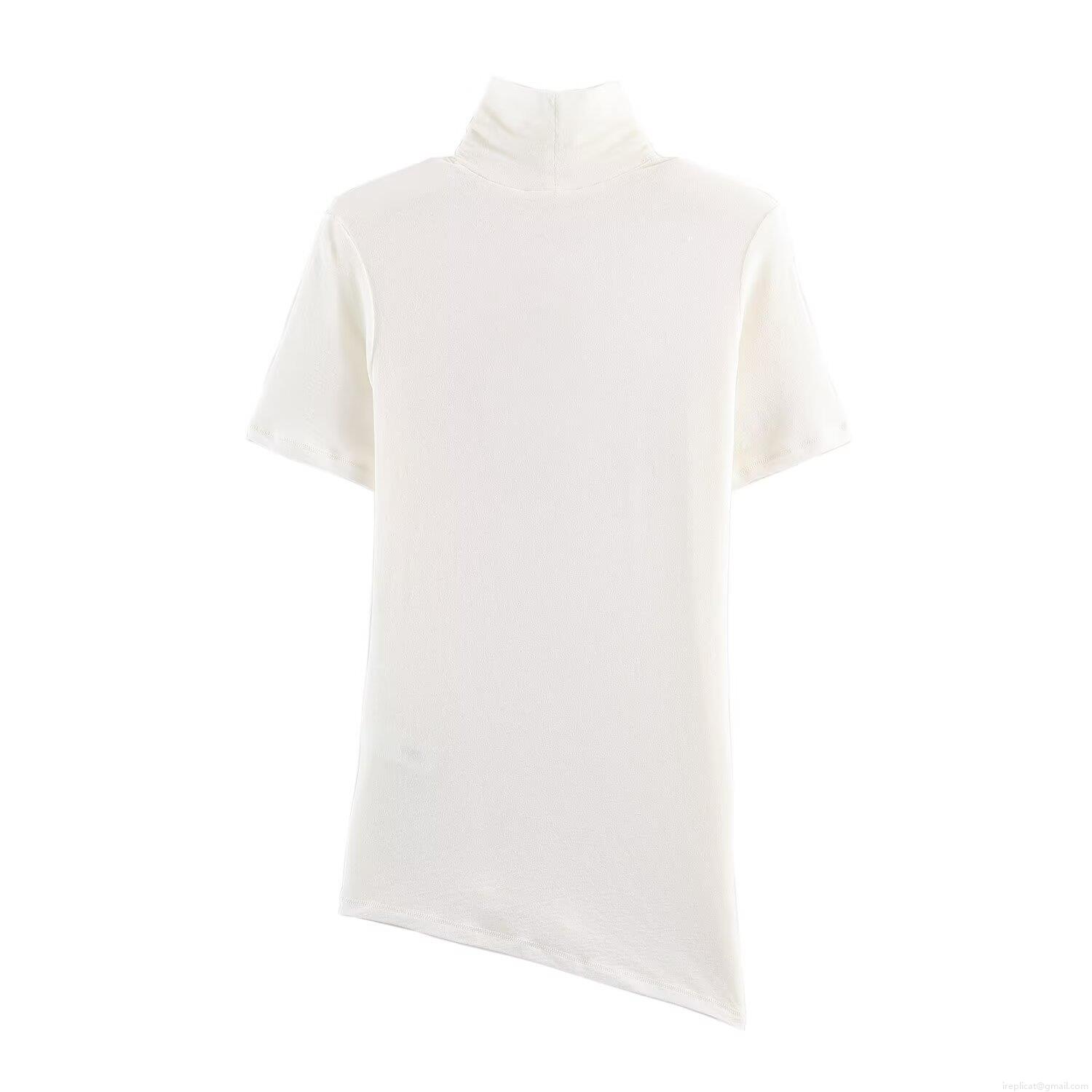 Women's Winter Fashion Casual High Neck Short Sleeve Knit T-Shirt Solid Color Loose Fit Top With Asymmetrical Hem Spandex Blend Tee For Daily Wear