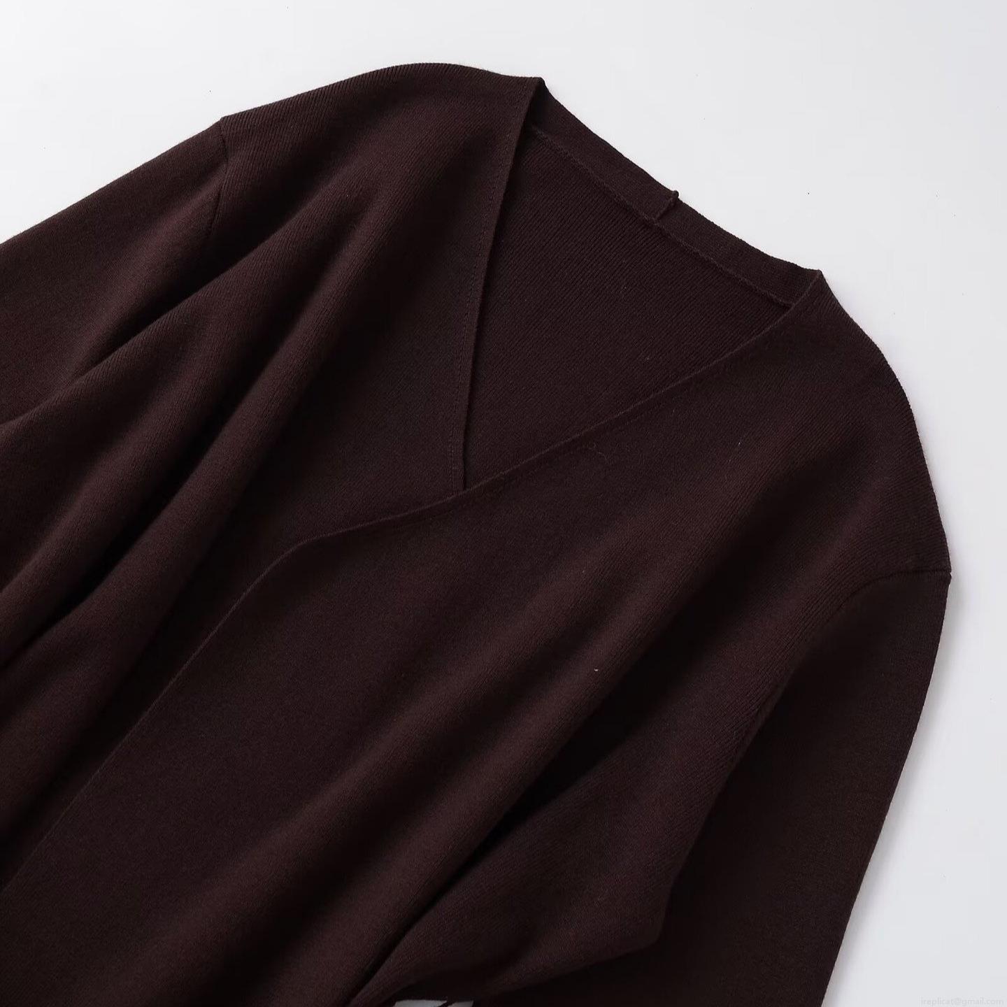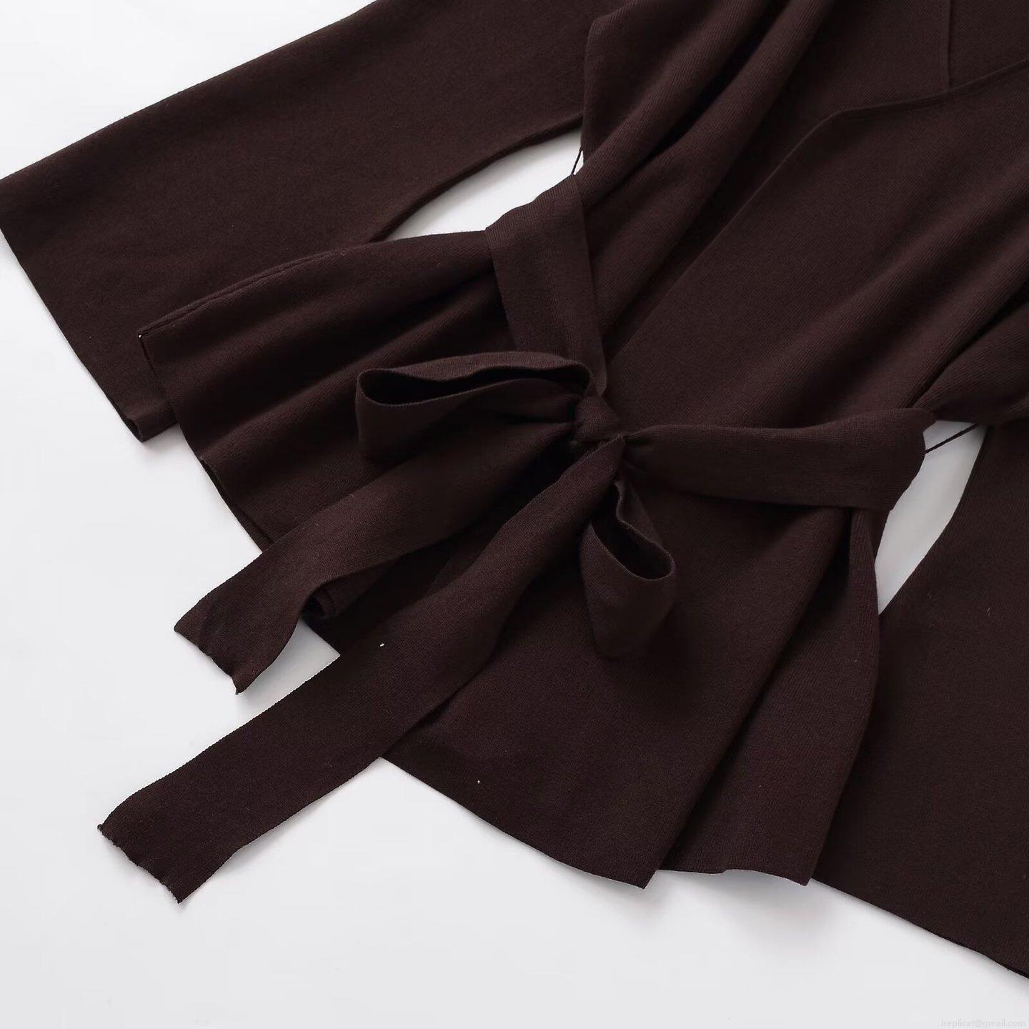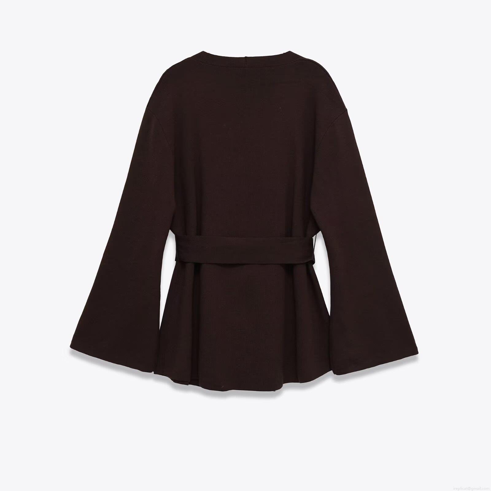 Women's Winter Fashion Casual Knit Jacket With Belt V Neck Long Bell Sleeve Cardigan Solid Coffee Brown Warm Loose Outerwear Coat For Women