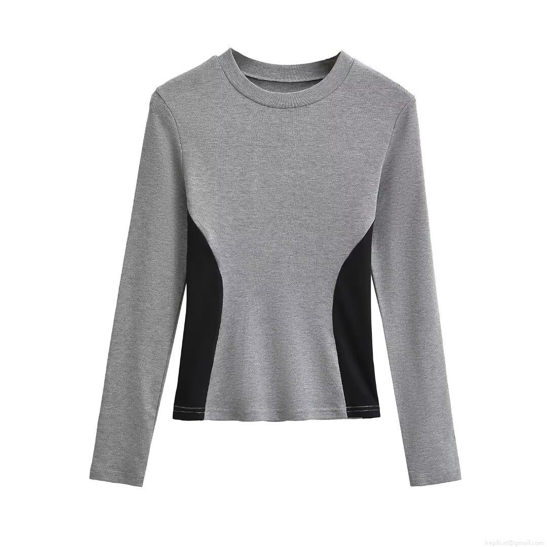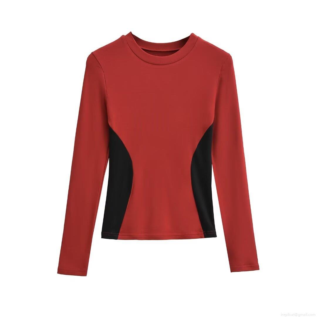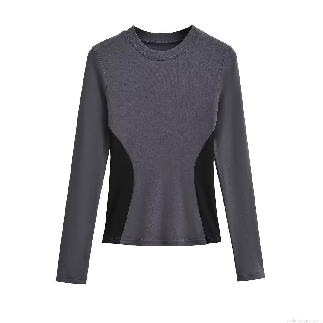 Women's Winter Fashion Patchwork Long Sleeve T-Shirt Crew Neck Slim Fit Polyester Base Layer Top Casual Color Block Streetwear Tee For Ladies