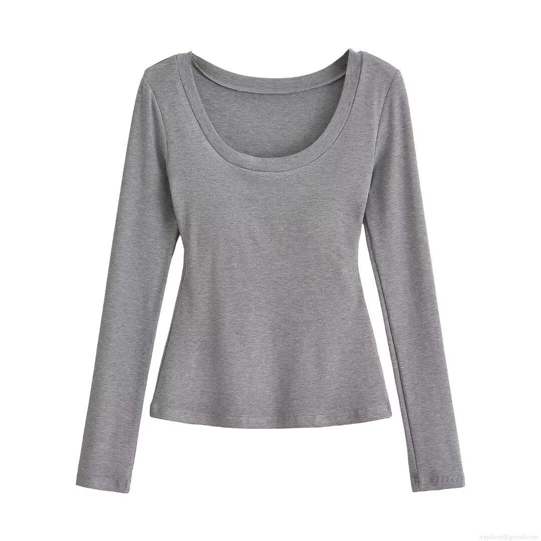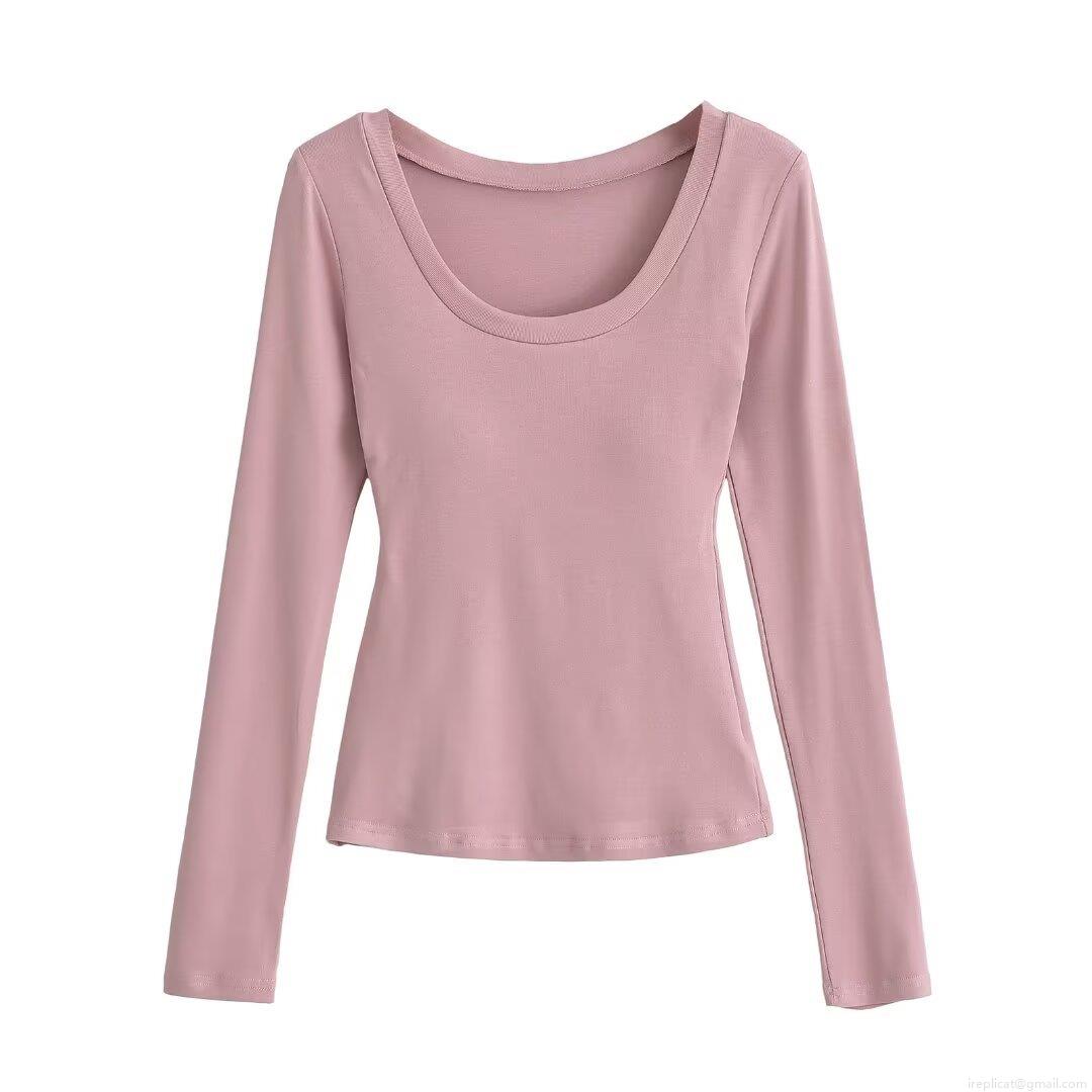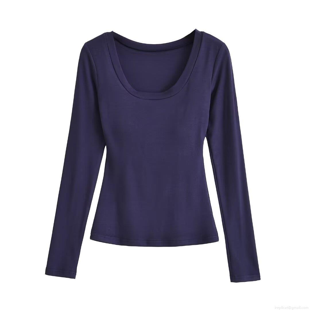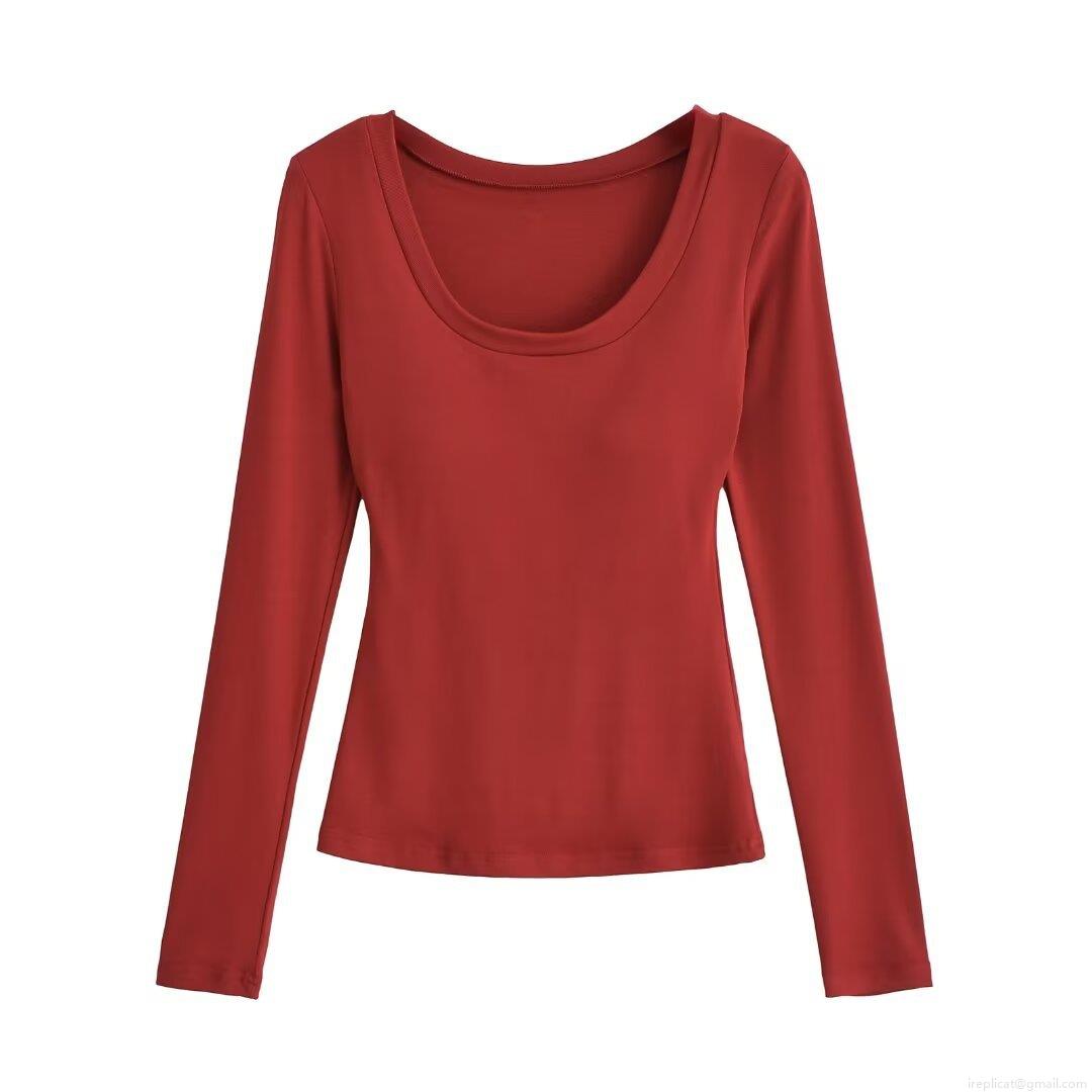 Women's Winter Fashion U-Neck Slim Fit Long Sleeve T-Shirt Solid Color 95% Polyester 5% Spandex Base Layer Top for Daily Wear Streetwear