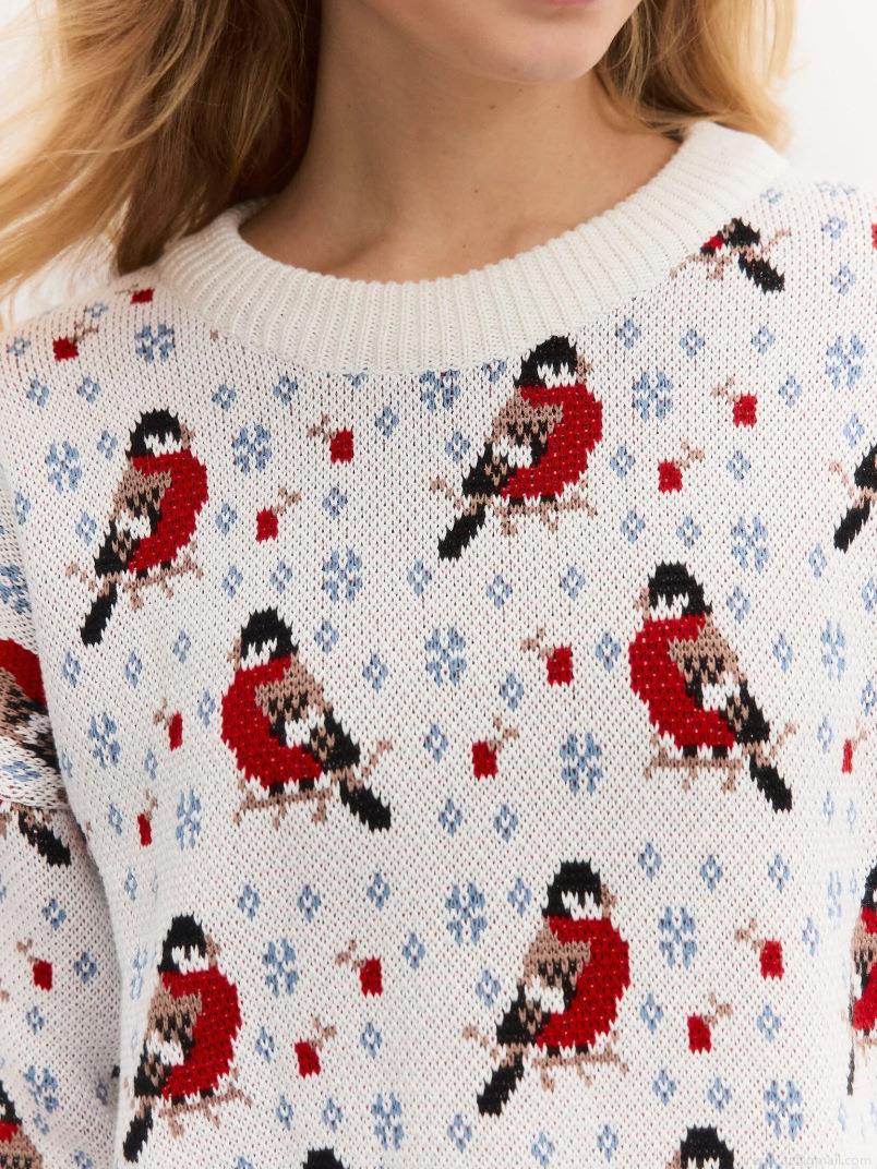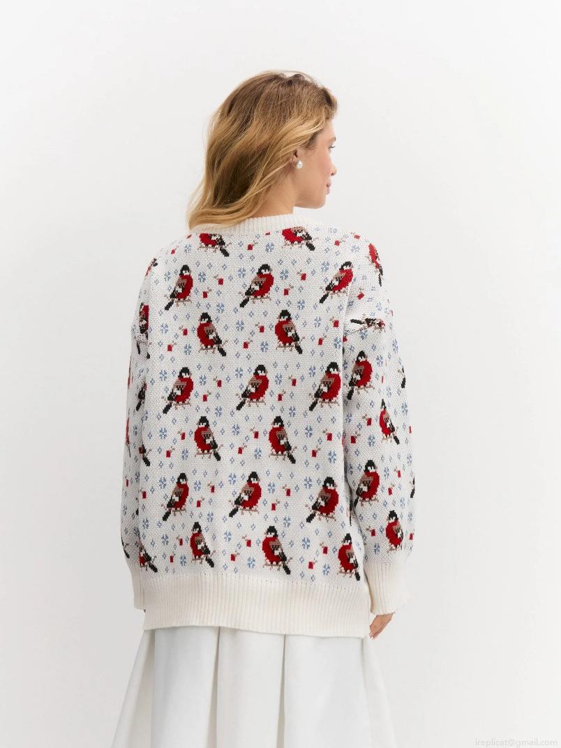 Snowflake, Jacquard, Color Blocking, Little Bird, Red-bellied Grey Finch, Bird Pattern