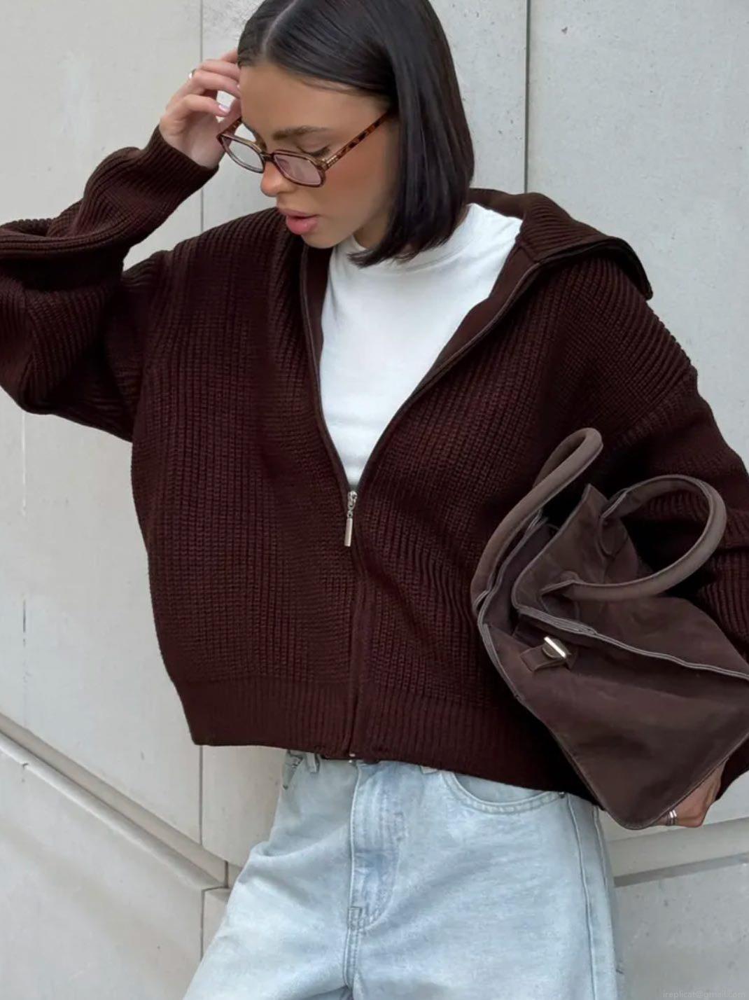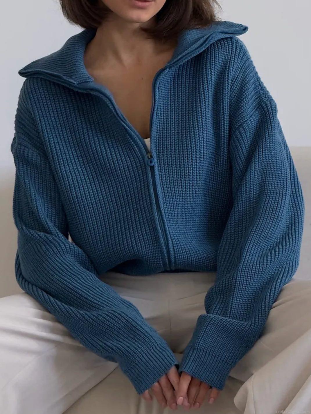 Solid Color, Chunky Knit Texture, Stand-up Collar Design, Zipper Placket